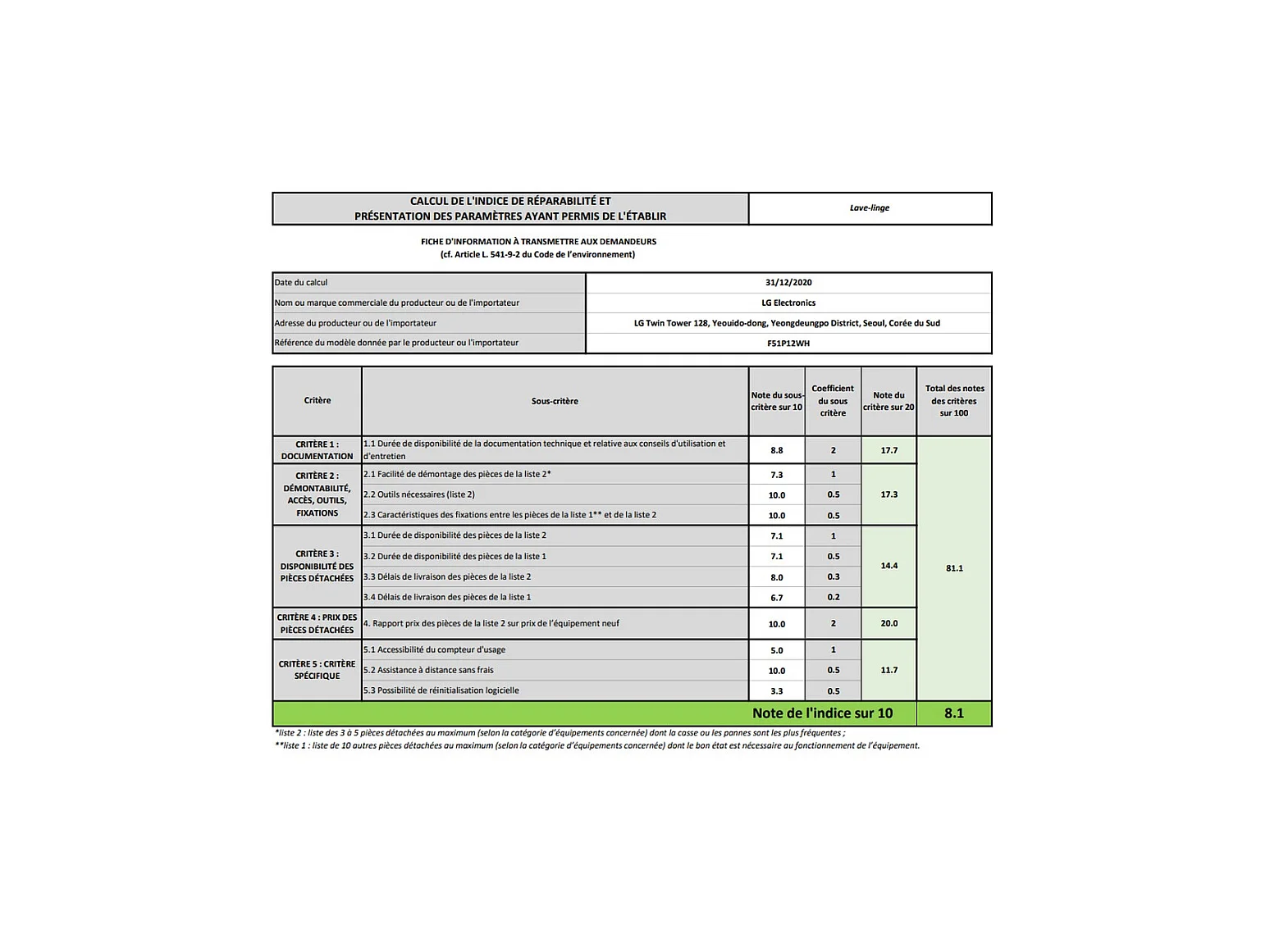 Lave-linge frontaux 15kg 127L LG 1100tr/min 70cm E, F 51 P 12 WH