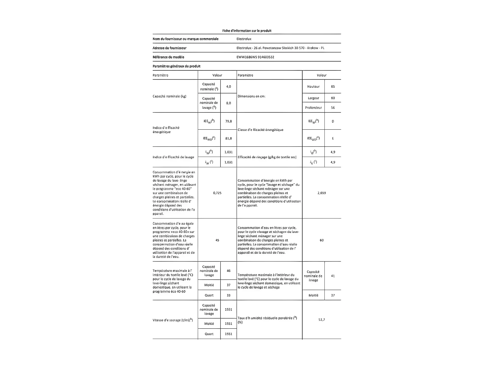 Lave-linge séchants ELECTROLUX, EWW1686WS