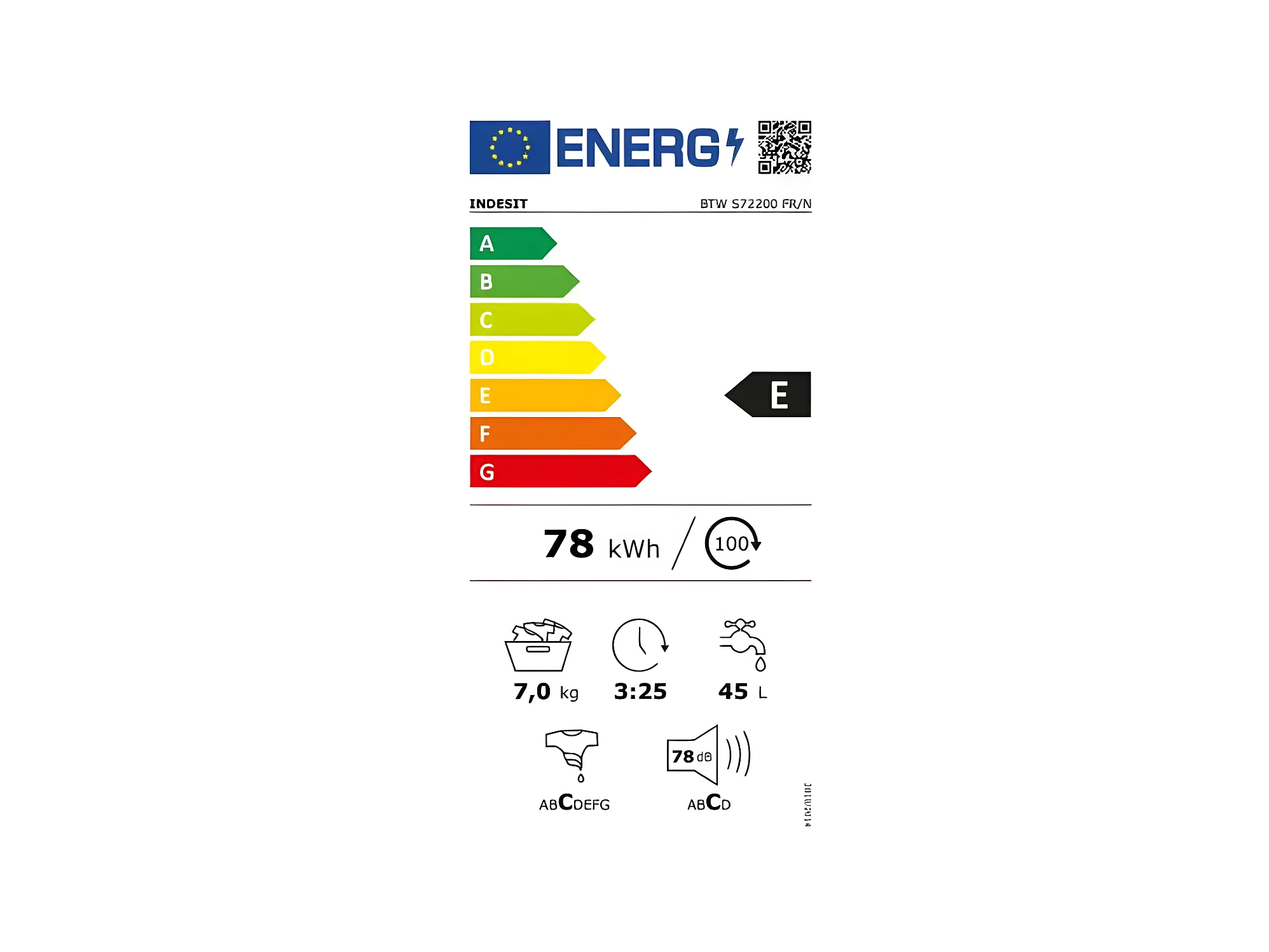 Lave-linge top 7kg 42L INDESIT 1200tr/min 40cm E, BTWS 72200 FRN