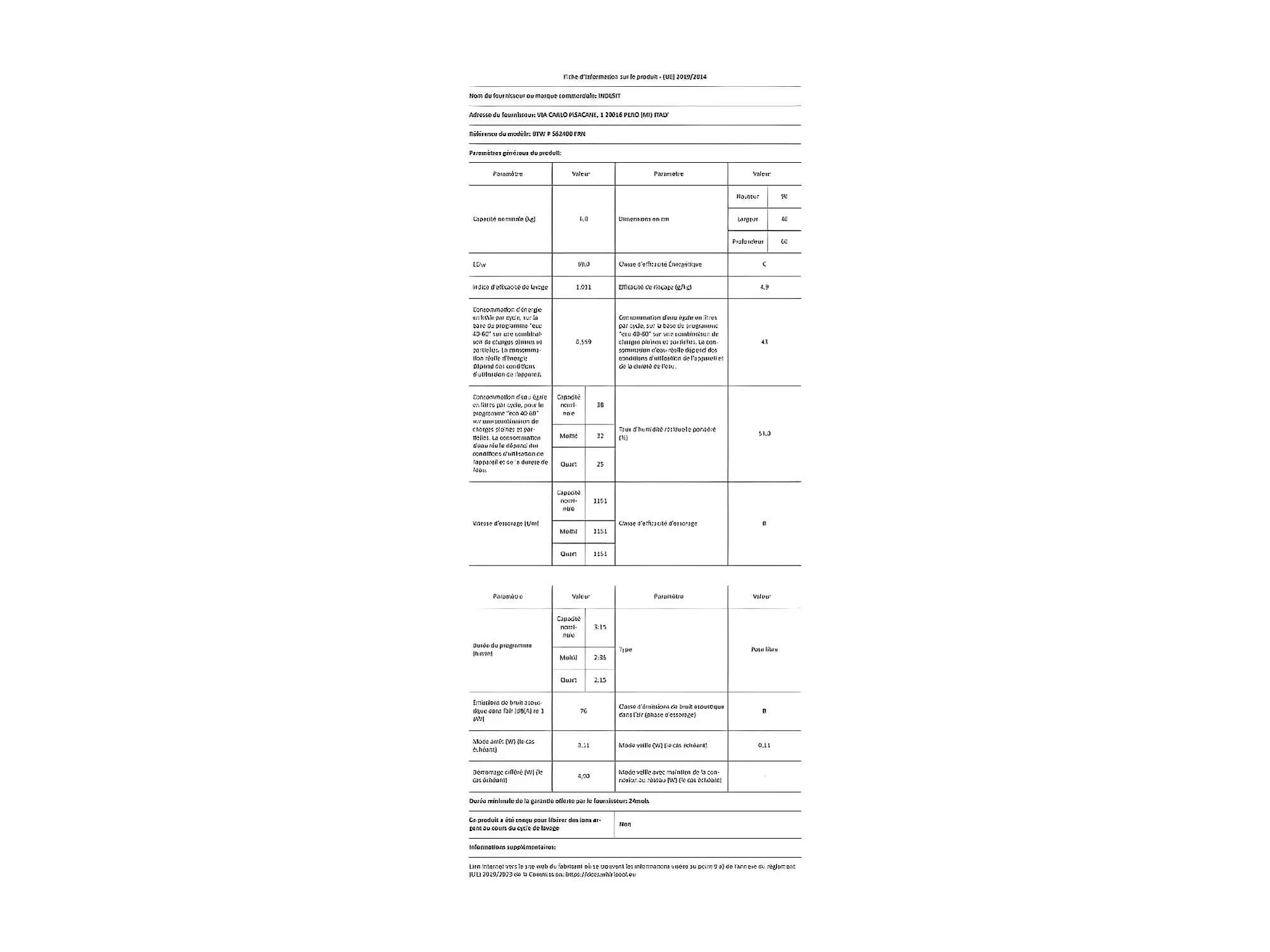 Lave-linge top INDESIT, BTWPS62400FRN