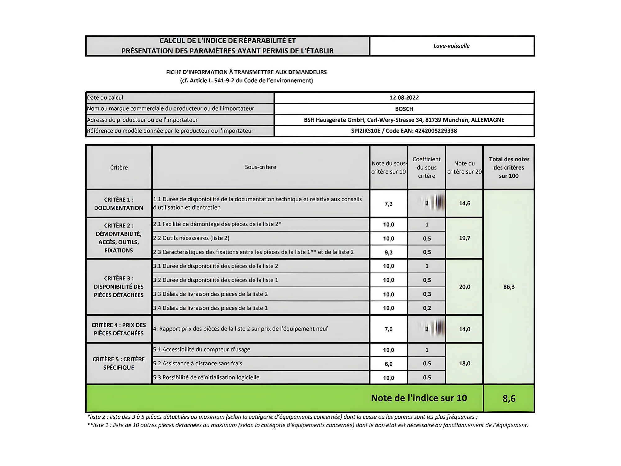 Lave-vaisselle encastrable BOSCH 9 Couverts 44.8cm F, SPI 2 IKS 10 E