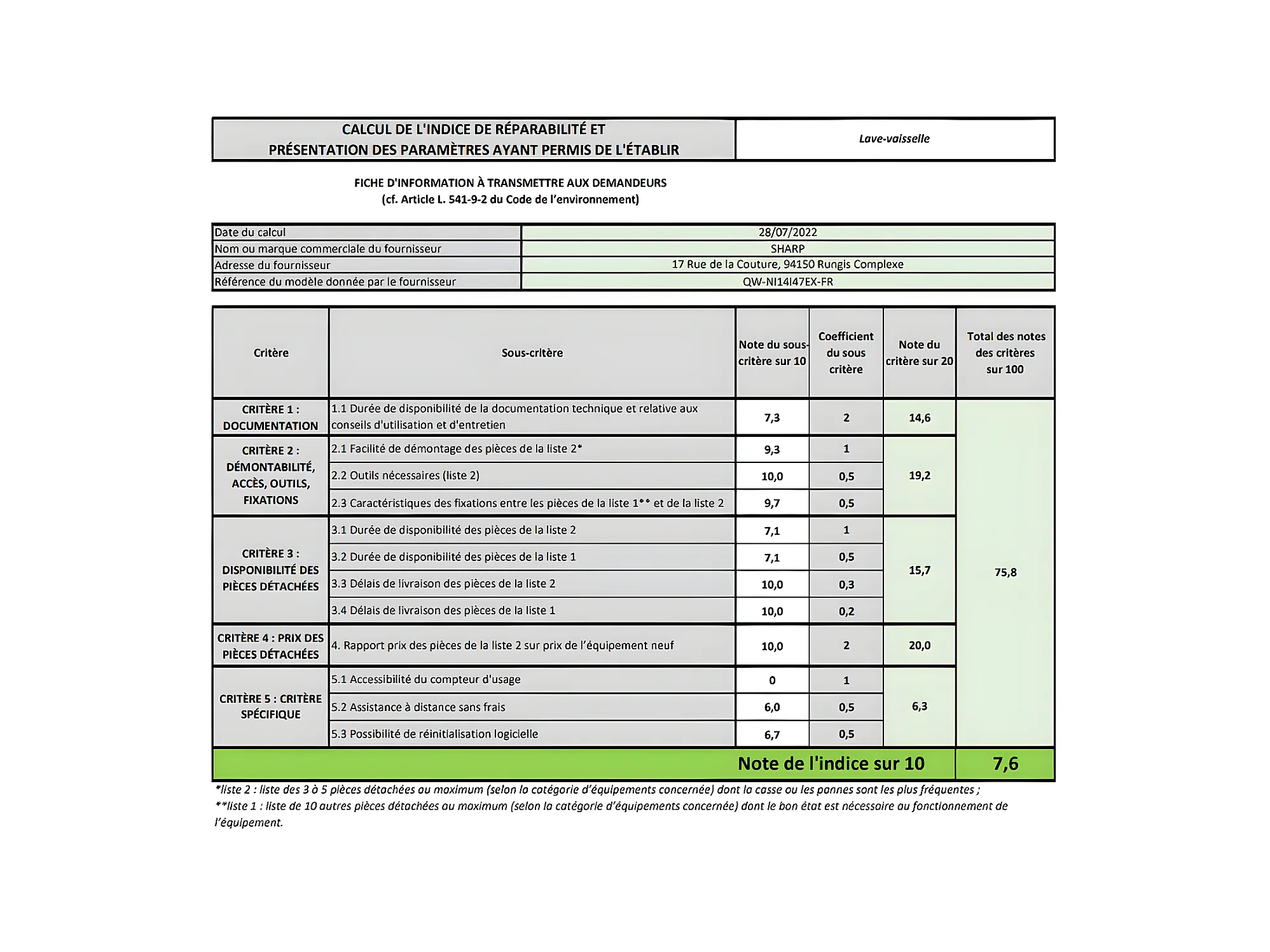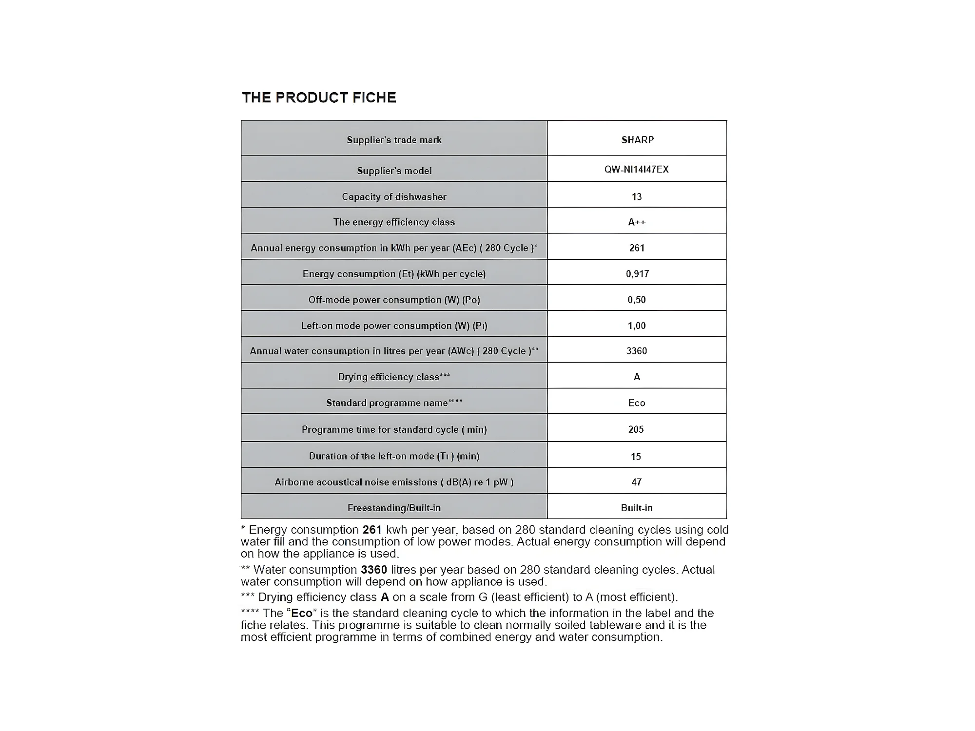 Lave-vaisselle encastrable SHARP 13 Couverts 60cm E, QWNI14I47EX