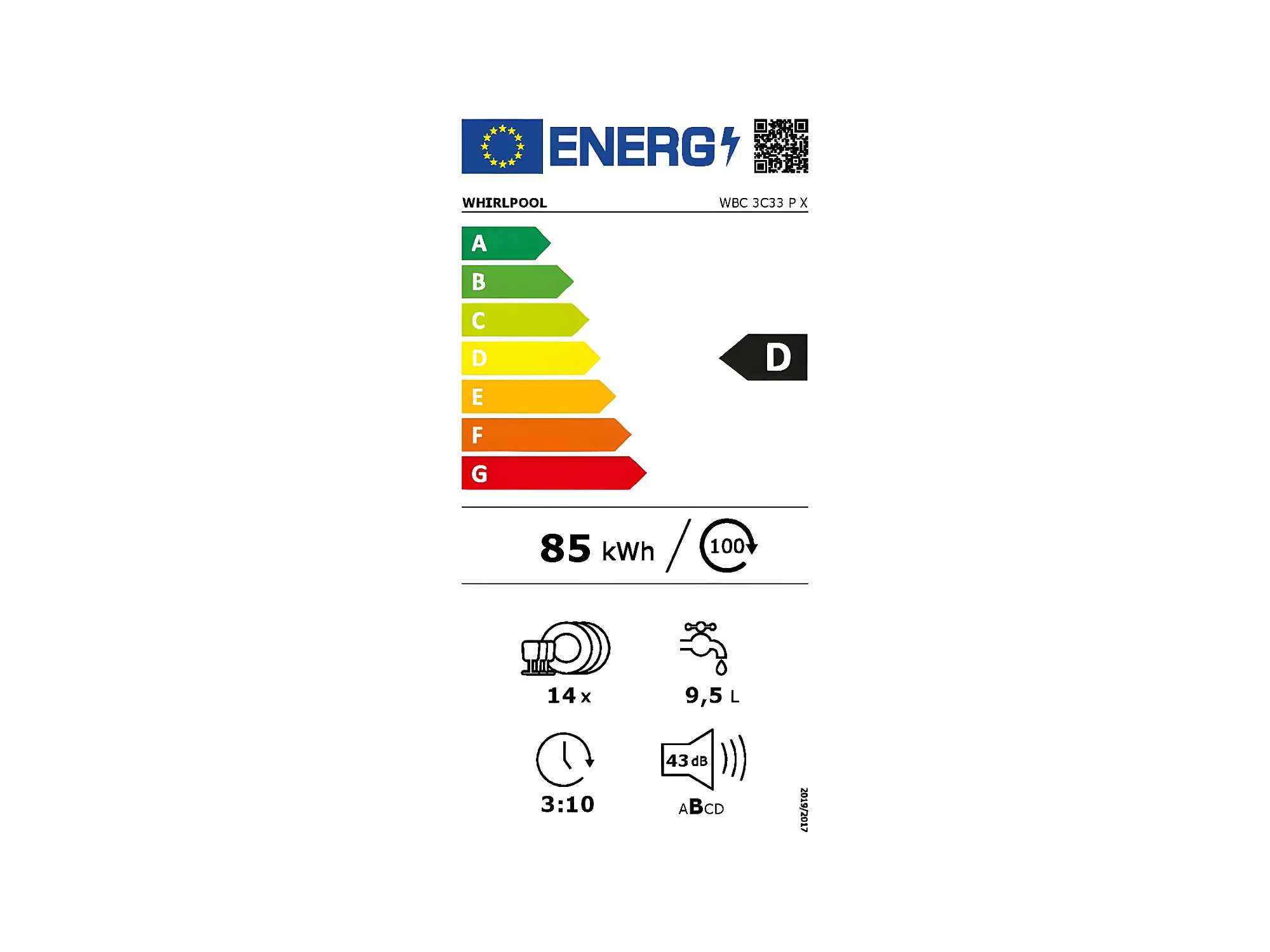 Lave-vaisselle encastrable WHIRLPOOL 14 Couverts D, WBC3C33PX