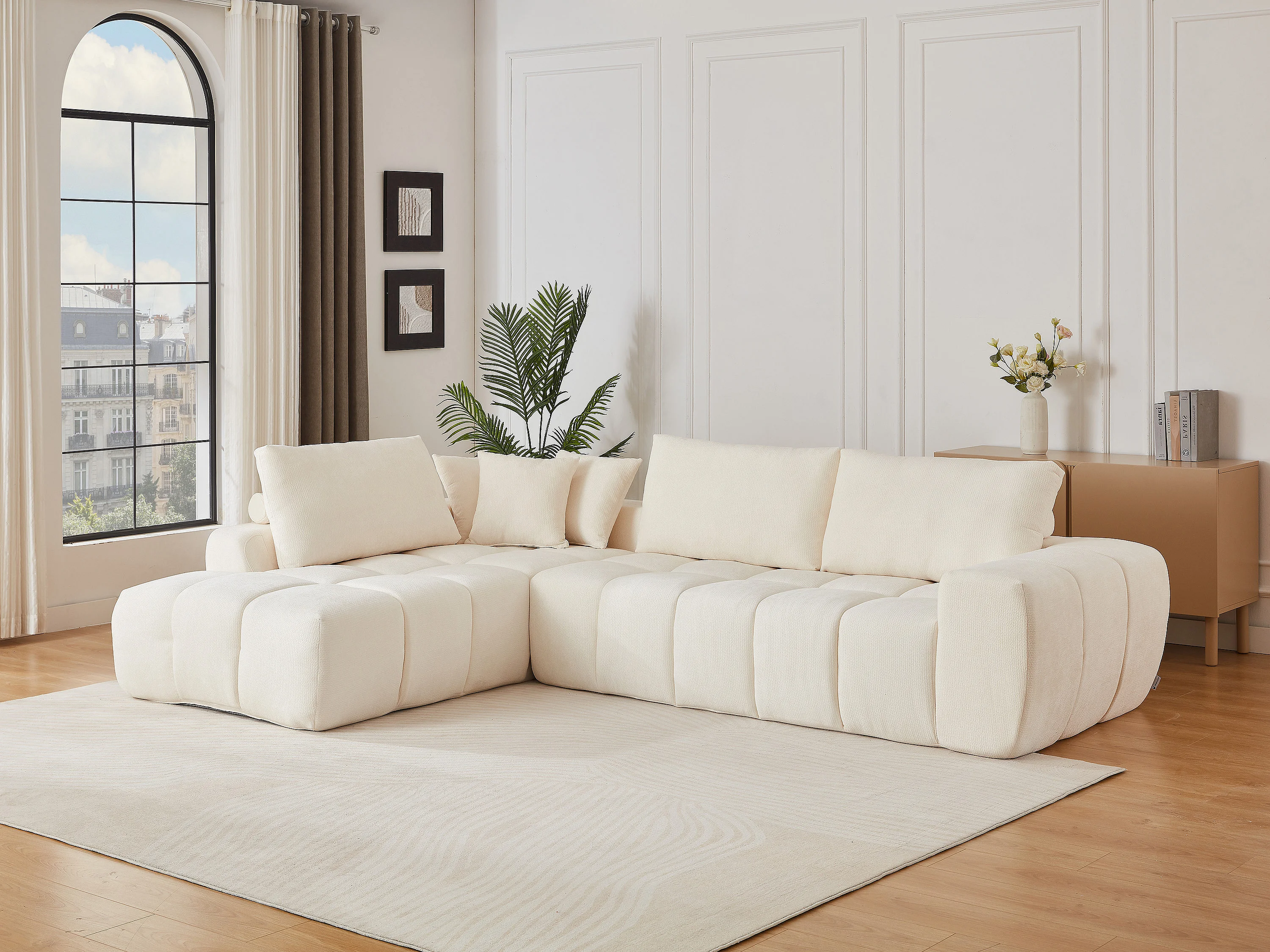 Canapé d'angle gauche en tissu texturé beige LAVEZO