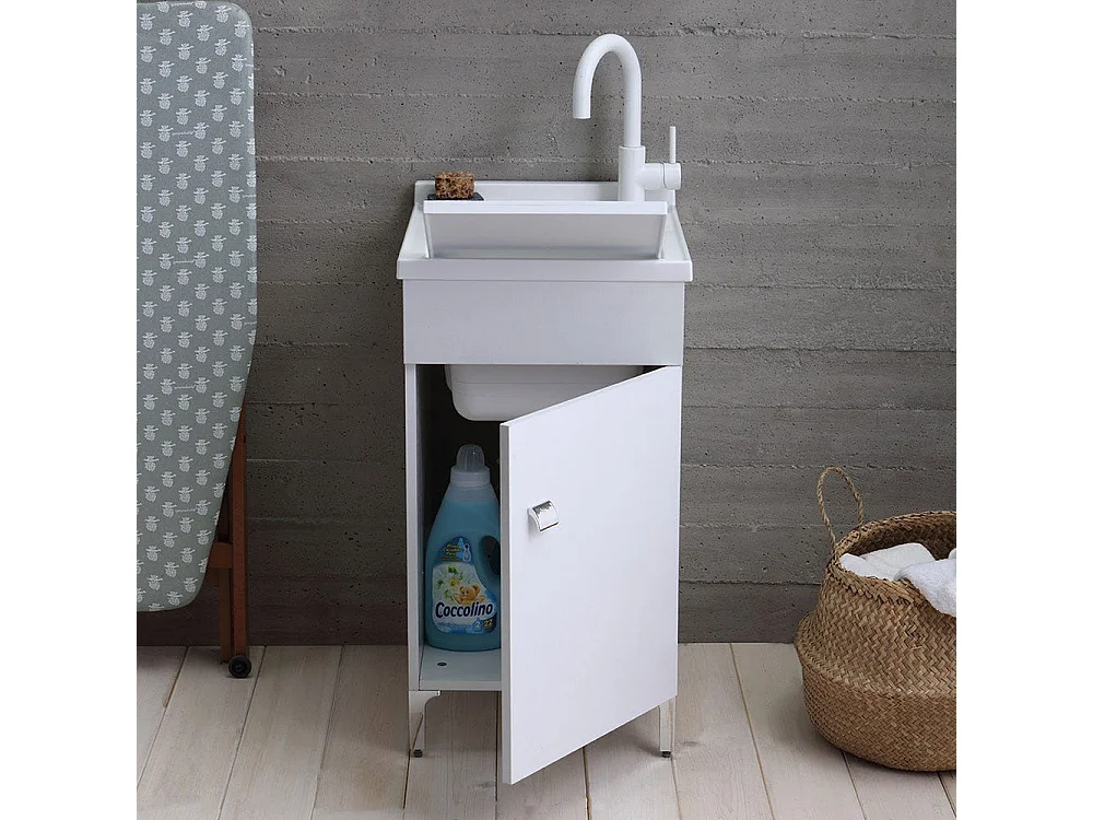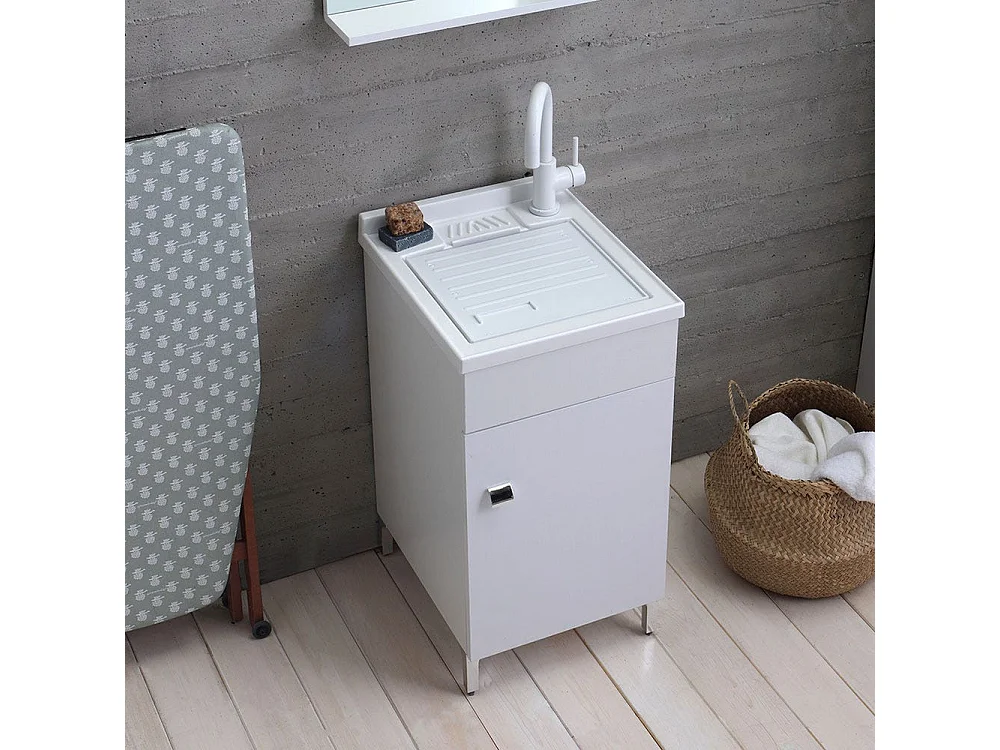 Lavoir Avec Meuble 45X50 Cm Blanc Avec Planche Incluse