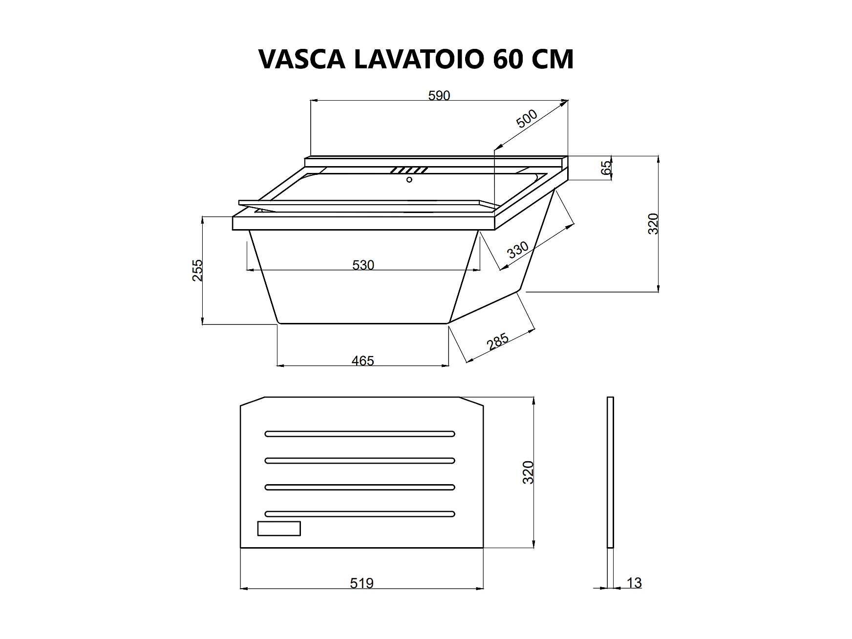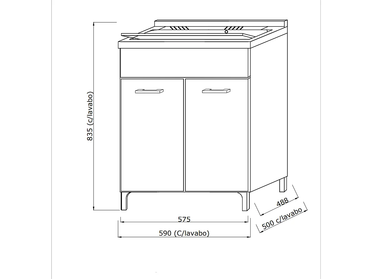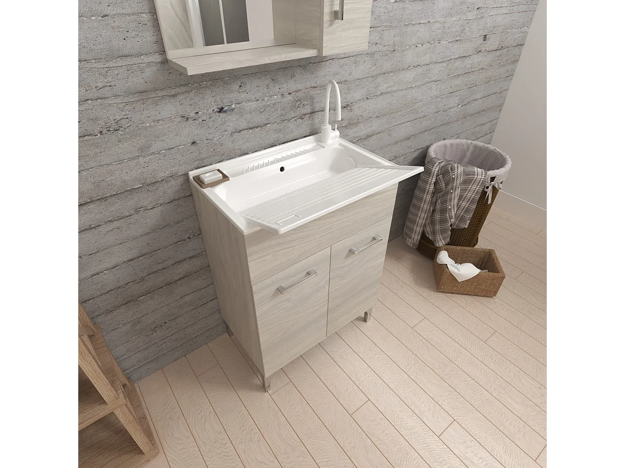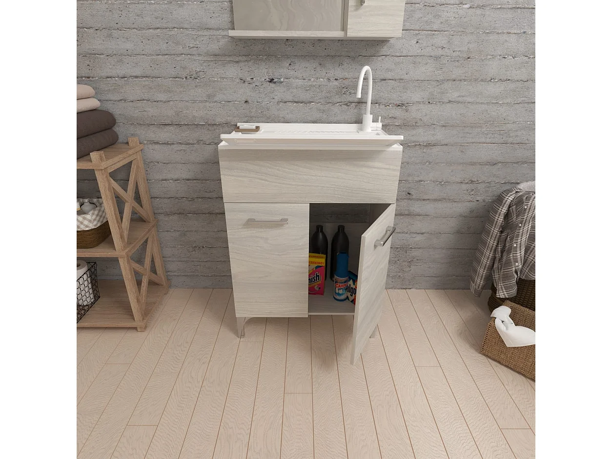 Lavoir Avec Meuble 60X50 Avec 2 Portes Et Planche À Laver Gris Moyen | Pratico