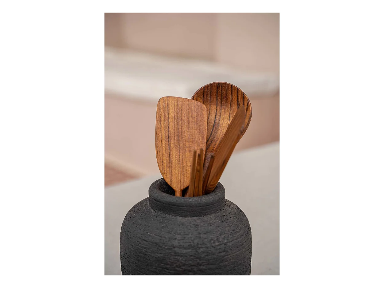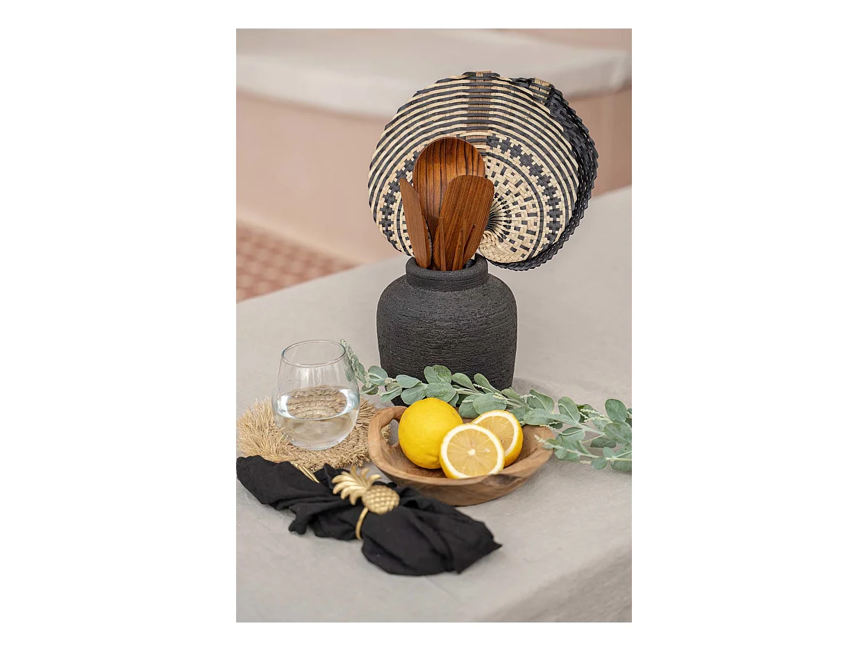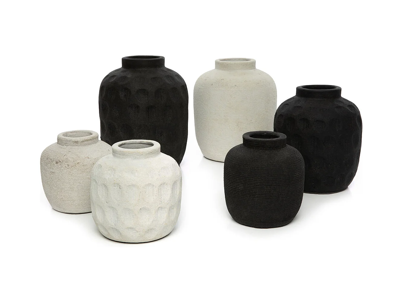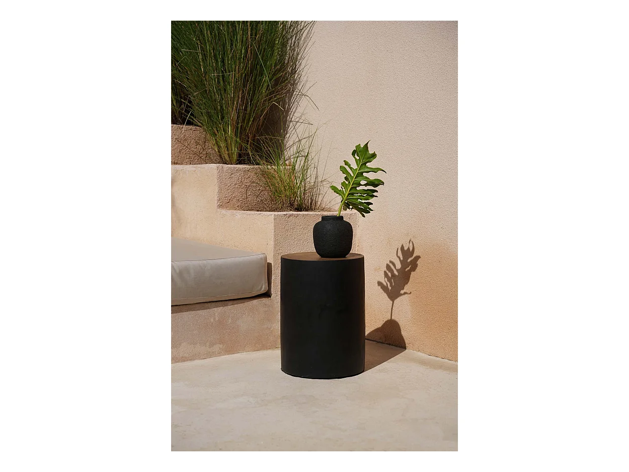 Vase rond avec col en terre cuite noire 29x29x23 cm