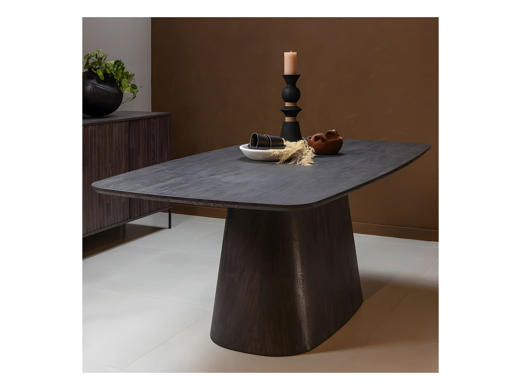 Leah - Table à manger 8 personnes en bois - Bois foncé