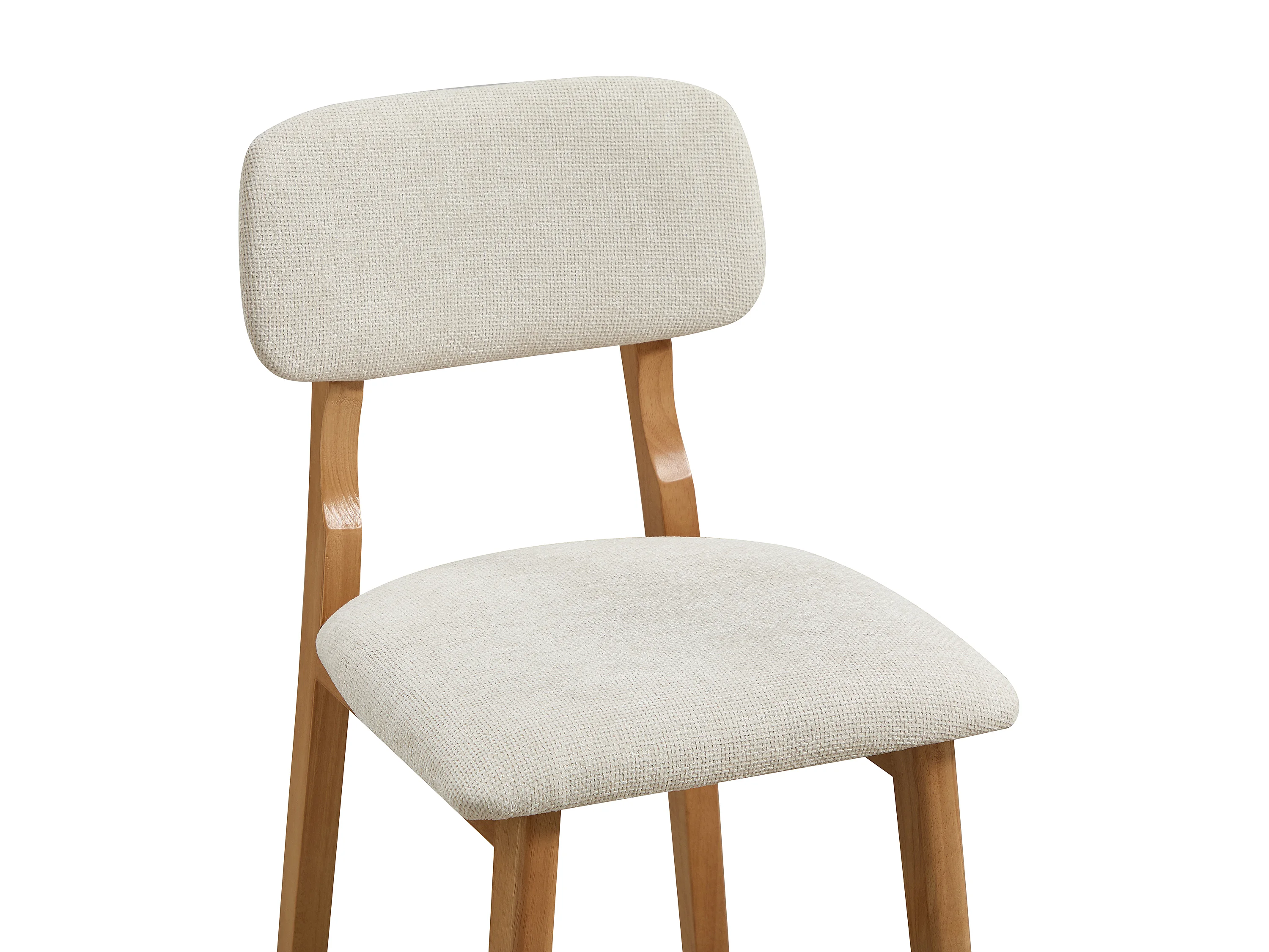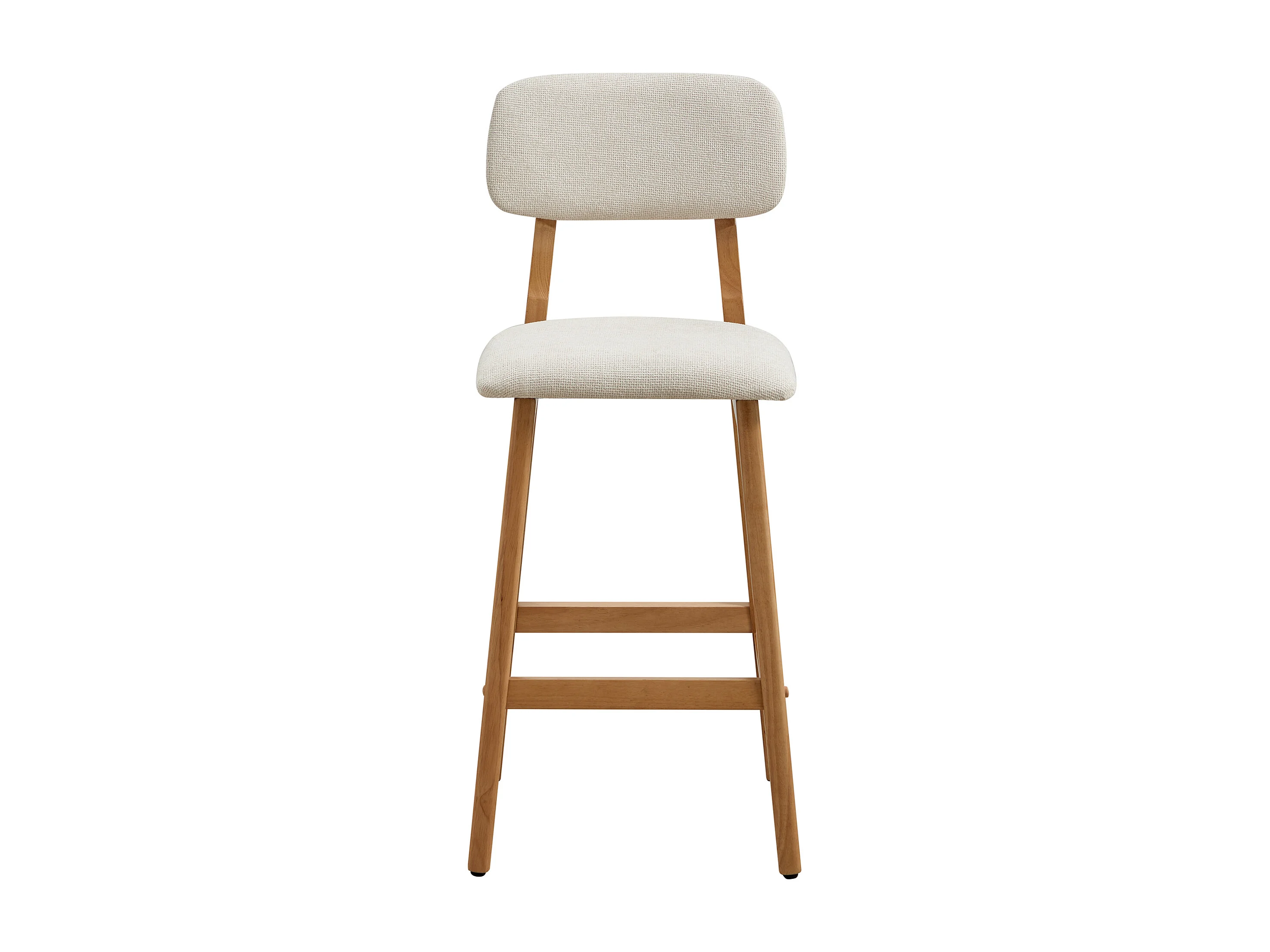 Lot de 2 tabourets en tissu texturé et bois d'hévéa naturel - Beige - LEDIRA