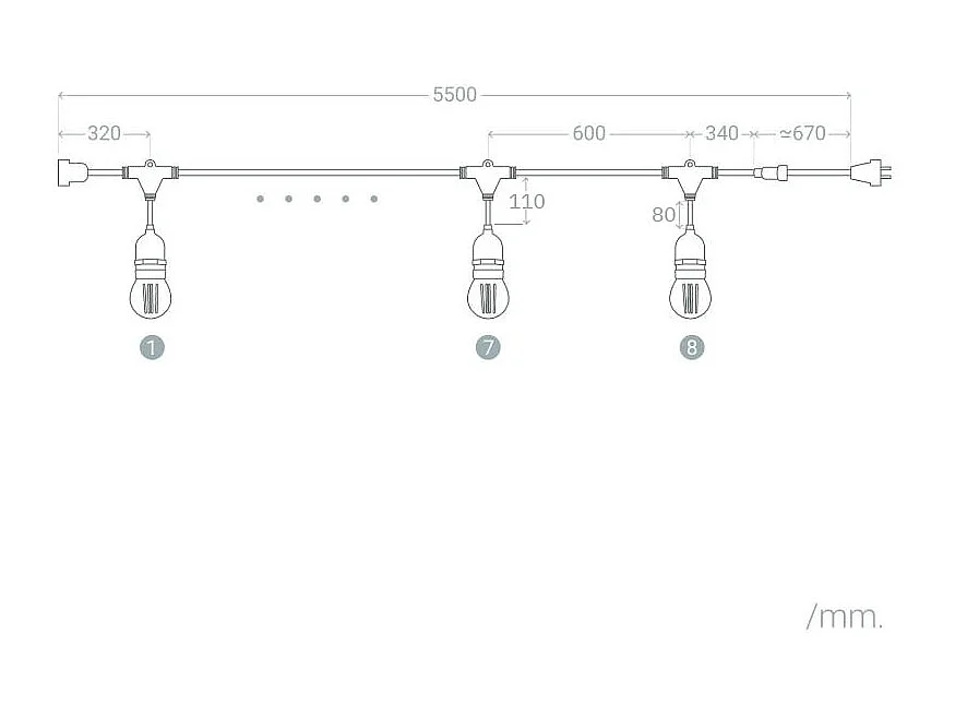 Kit Guirlande Waterproof 5.5m Blanche + 8 Ampoules LED E27 G45 3W de Couleurs Multicolore