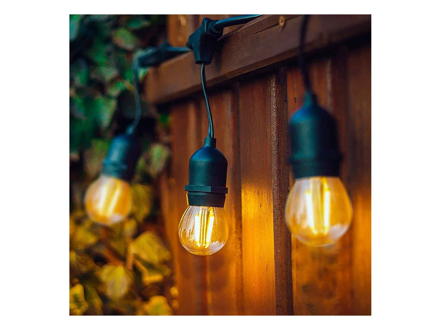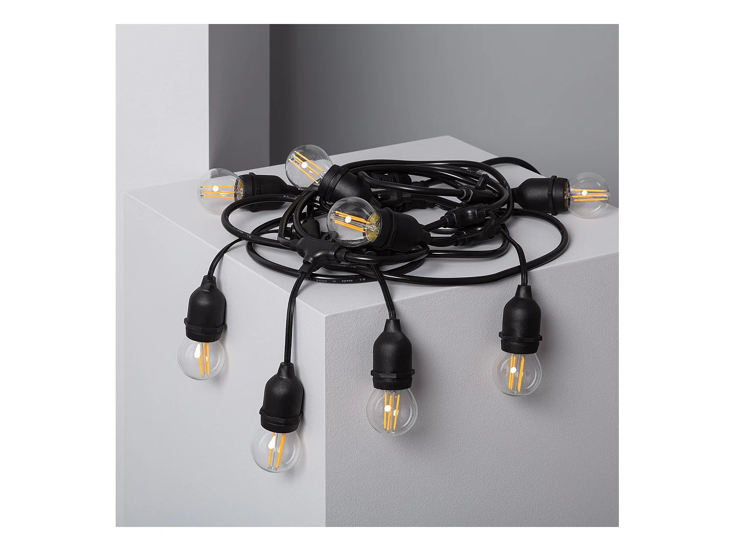 Kit Guirlande Waterproof 5.5m Noire + 8 Ampoules LED E27 Filament 4W 2700K Blanc chaud