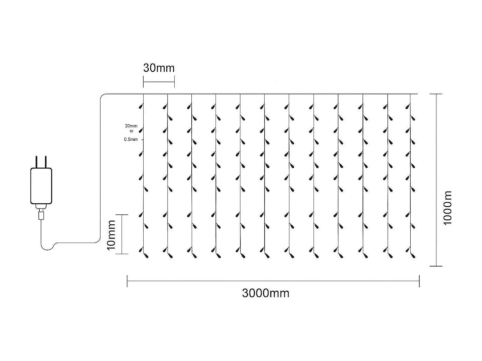 Rideau de Guirlande LED 3m 3000K Blanc chaud