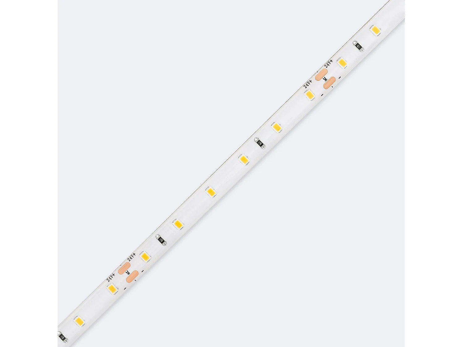 Ruban LED 24V SMD 60 LED/m 5m 5W/m 400lm/m Largeur 8mm Coupe 10cm IP65 2700K Blanc chaud