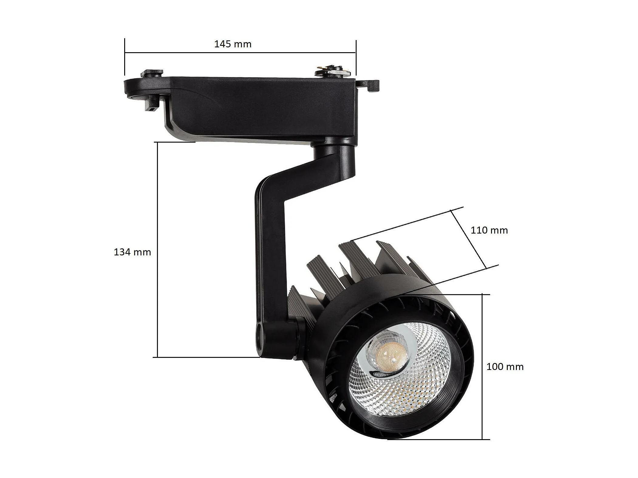 Spot LED sur Rail Triphasé 30W Dora Noir 4000K Blanc neutre