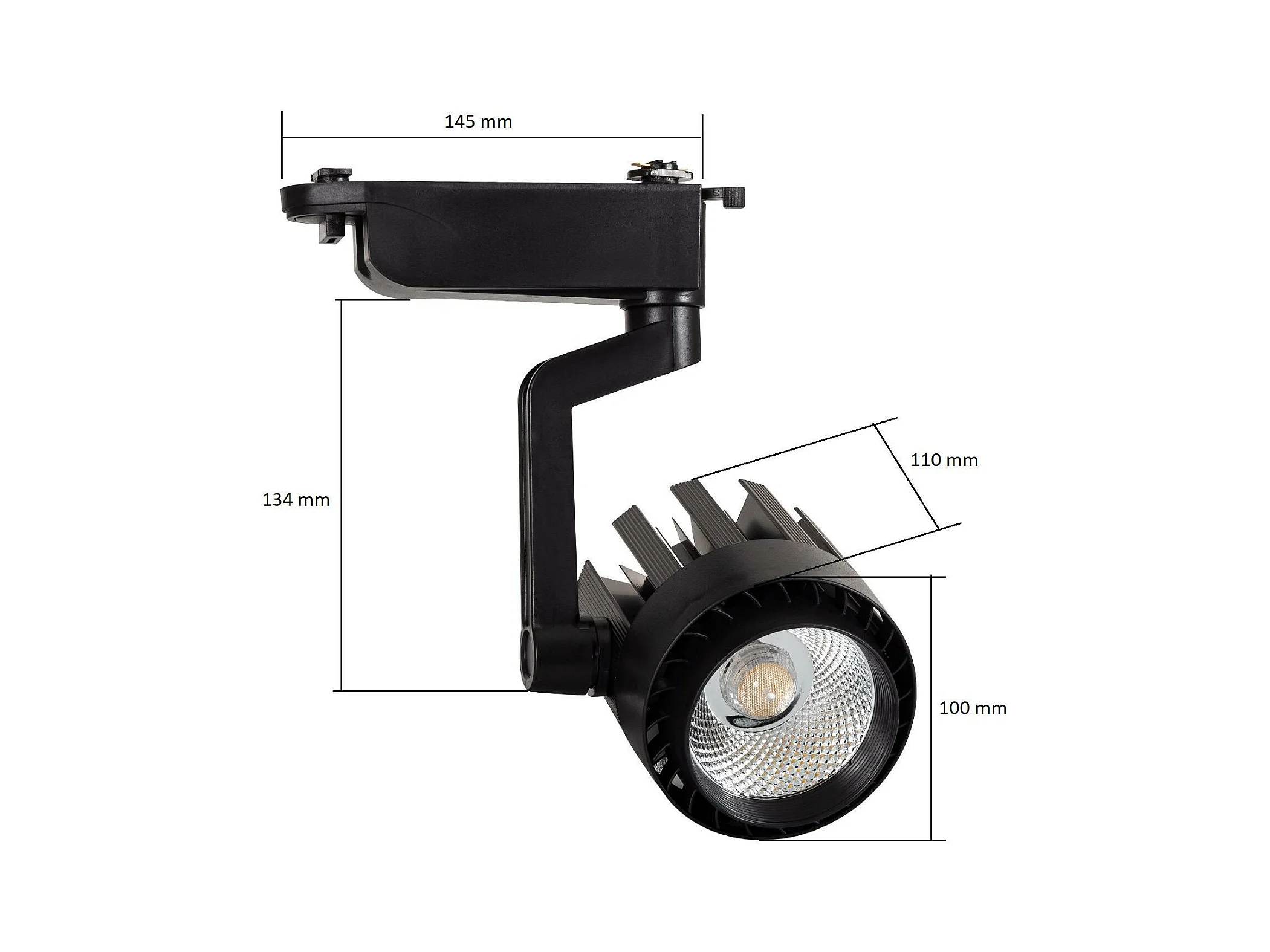 Spot LED sur Rail Monophasé 30W Dora Noir 4000K Blanc neutre