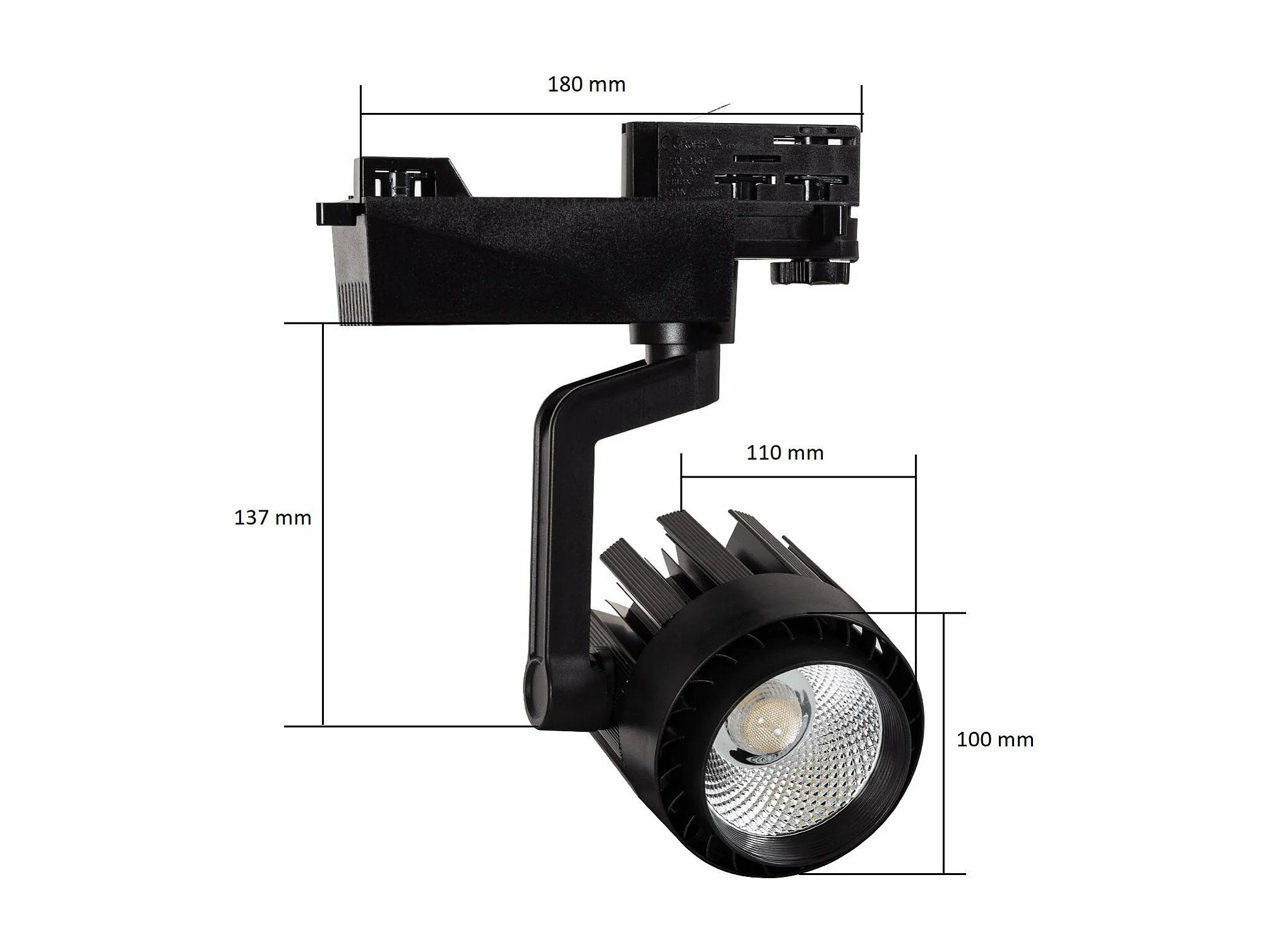Spot LED sur Rail Triphasé 30W Dora Noir 5000K Blanc froid