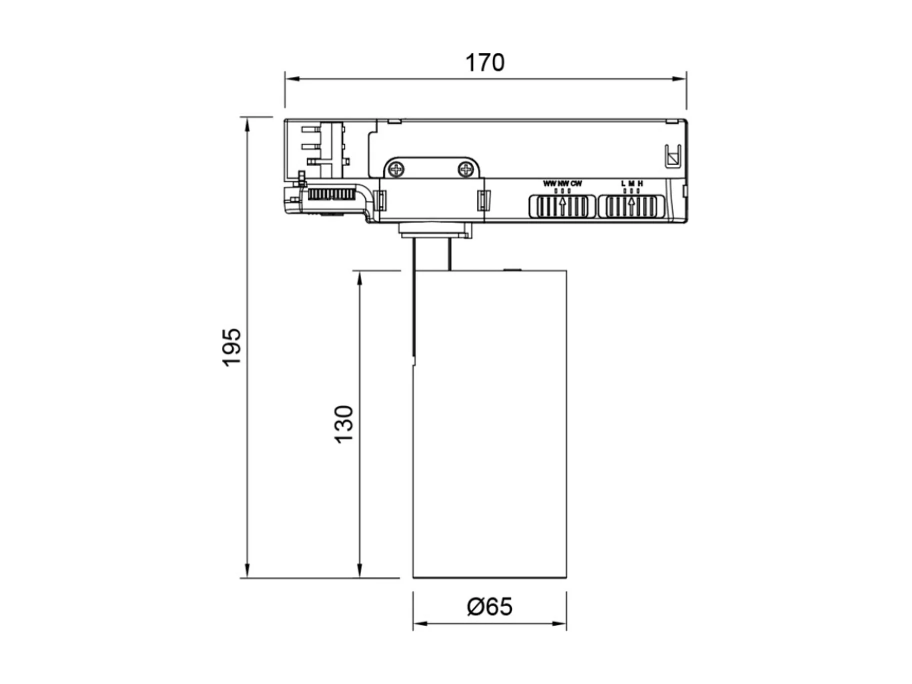 Spot LED Fasano Cylindre 20W pour Rail Triphasé Dimmable Noir 3200K Blanc chaud