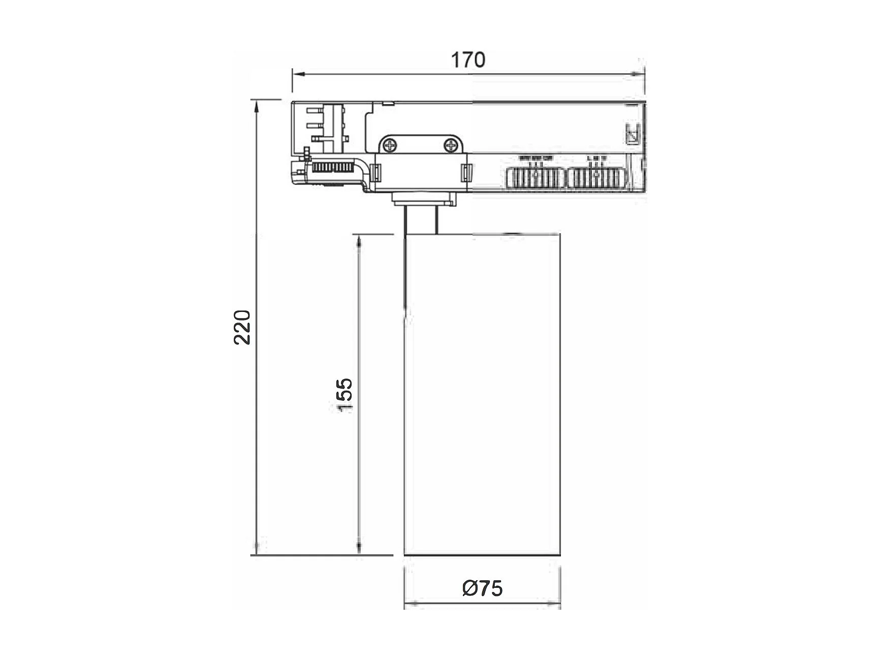 Spot LED Fasano Cylindre Biseau 30W pour Rail Triphasé CCT Sélectionnable Dimmable DALI Blanc 2700K - 3200K - 4000K Sélectionnable