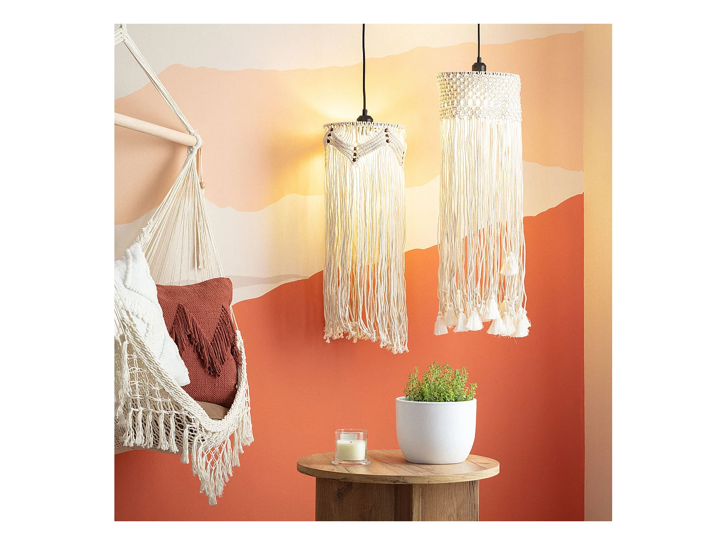 Suspension Métal et Coton Macramé Nanti Blanc cassé