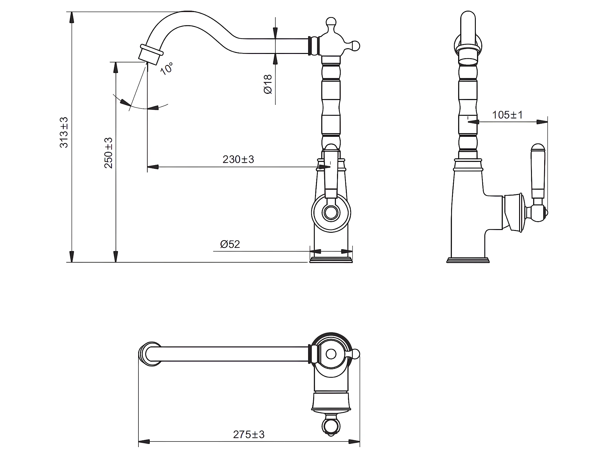 Robinet de cuisine IDEAL STANDARD Gusto carre or
