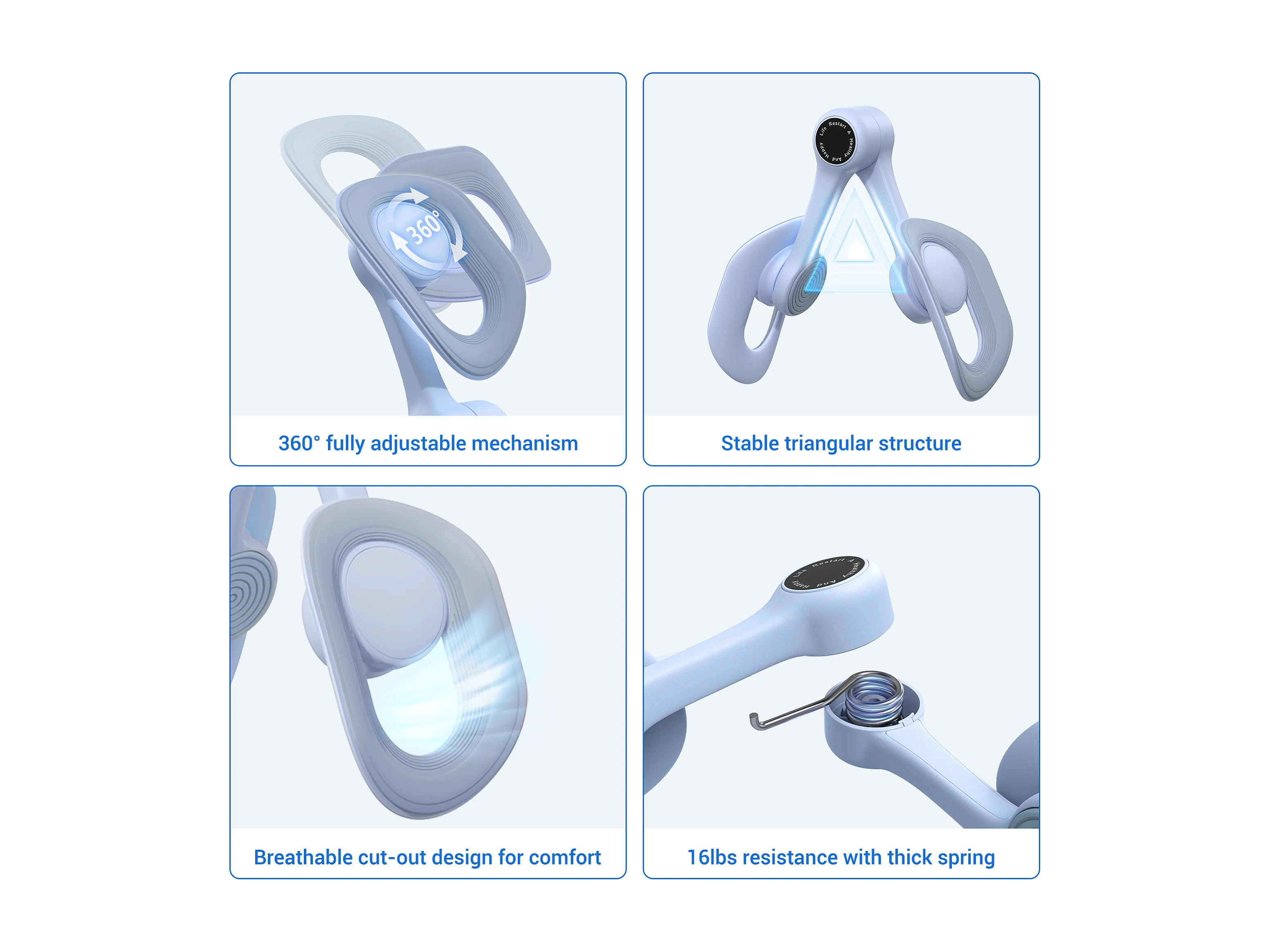 LEG TRAINER MERACH, Appareil cuisses adducteurs pectoraux 360° avec compteur, renforcement pelvien, post-accouchement, portable Bleu