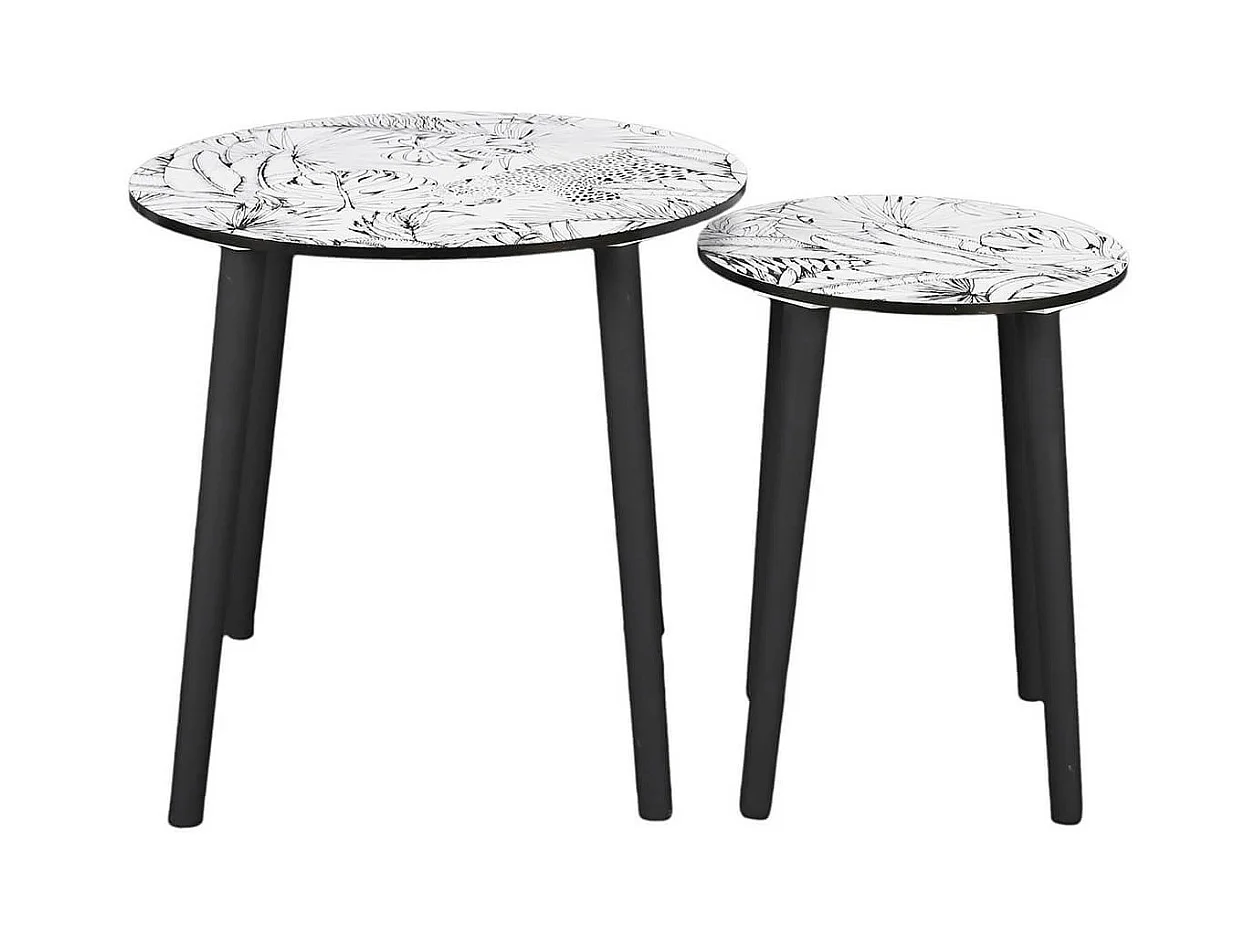 LEILANIE - Lot de 2 Tables Gigognes Plateaux Motif Jungle
