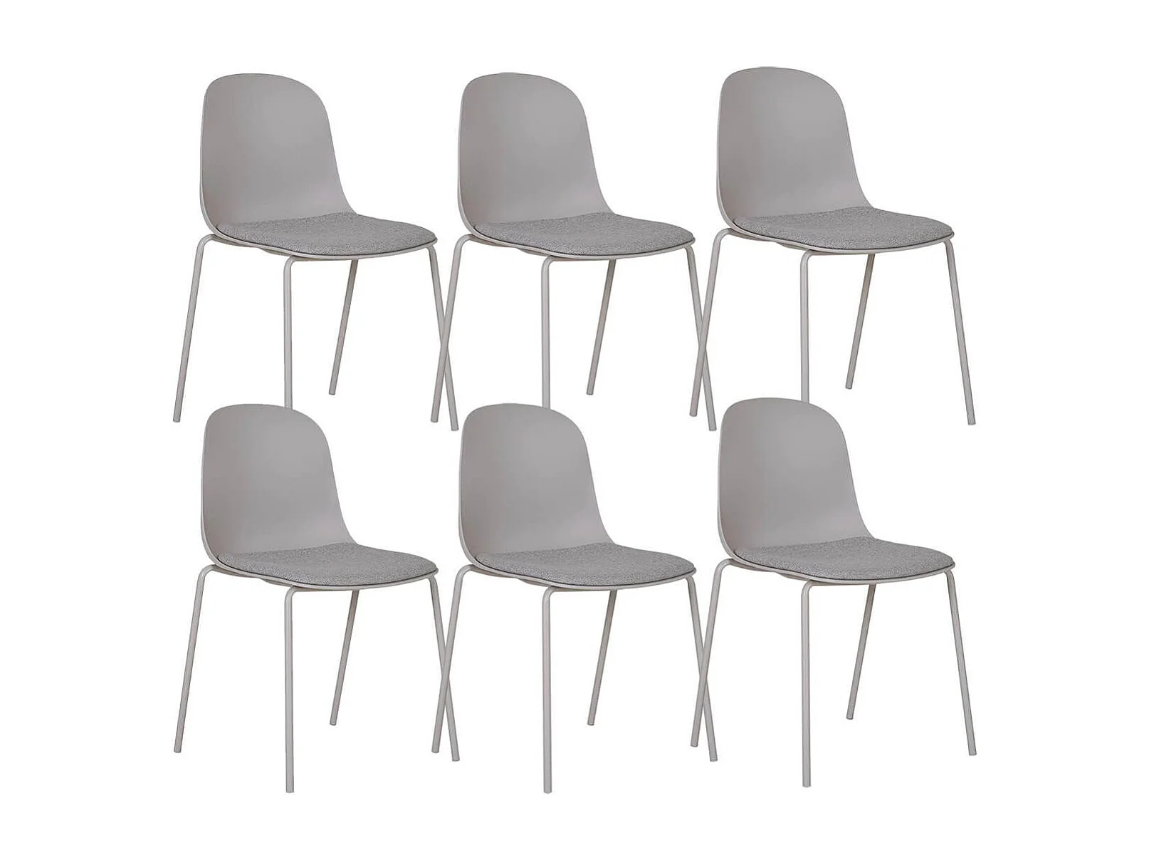 LENA - Lot de 6 Chaises Coque Polyester et Pieds Métal Gris Assise Mousse et Tissu