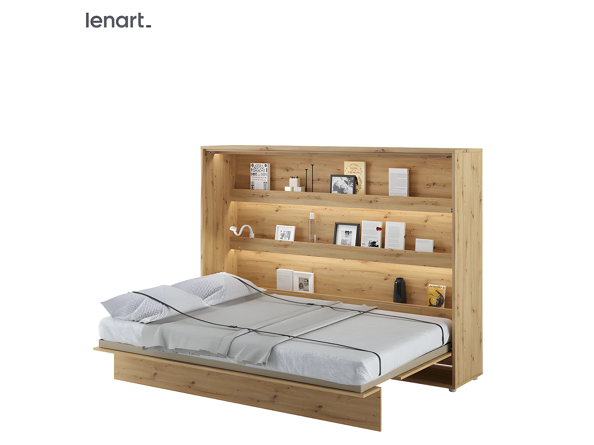 Lenart Armoire Lit escamotable Horizontal 160x200 cm Chêne artisan Lit Rabattable Lit Mural"Consus"