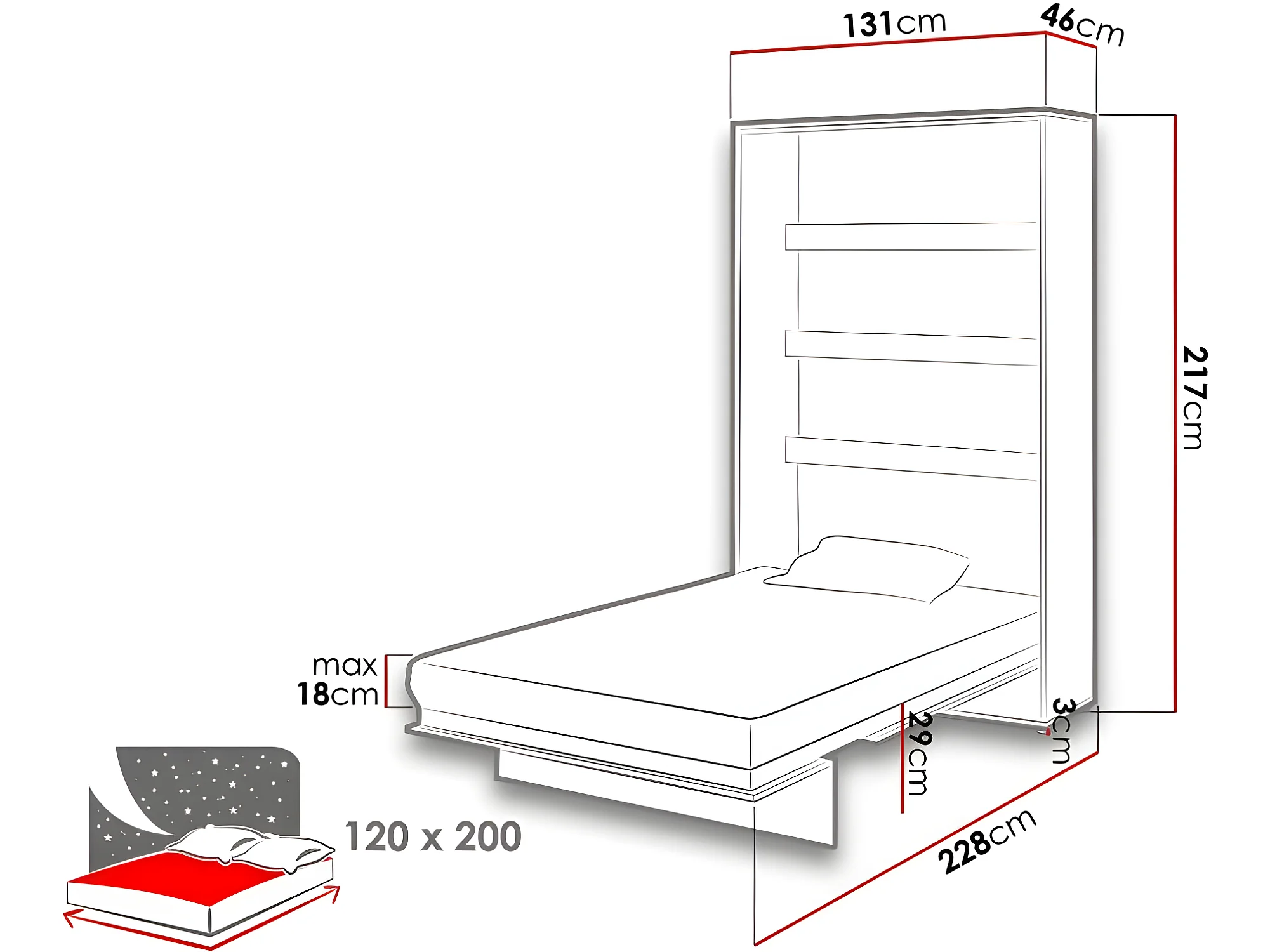 Lenart Armoire Lit escamotable Vertical 120x200 cm Blanc brillant Lit Rabattable Lit Mural"Consus"Lenart