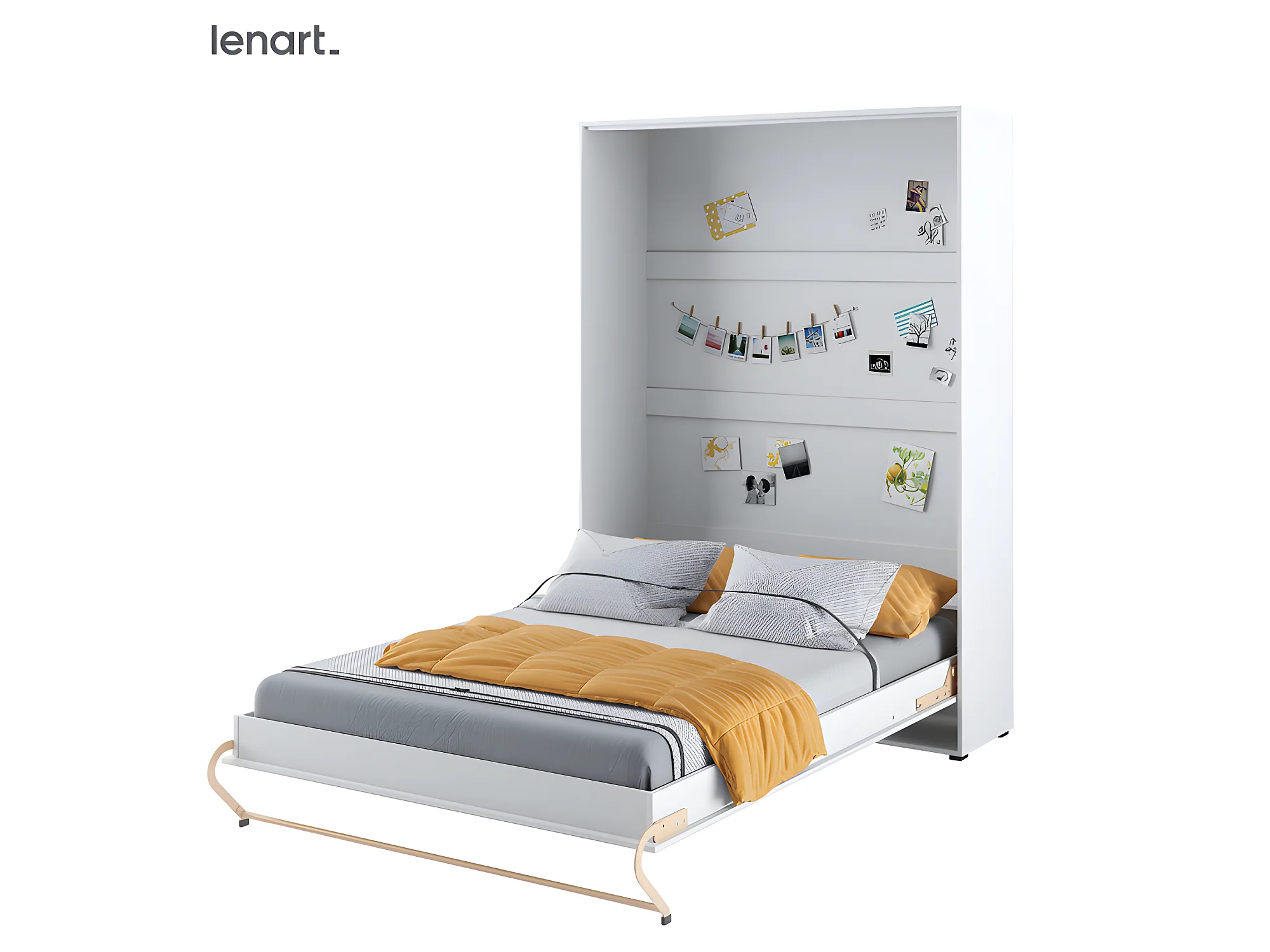 Lenart Armoire Lit escamotable Vertical 120x200 cm Blanc brillant Lit Rabattable Lit Mural Consus pro