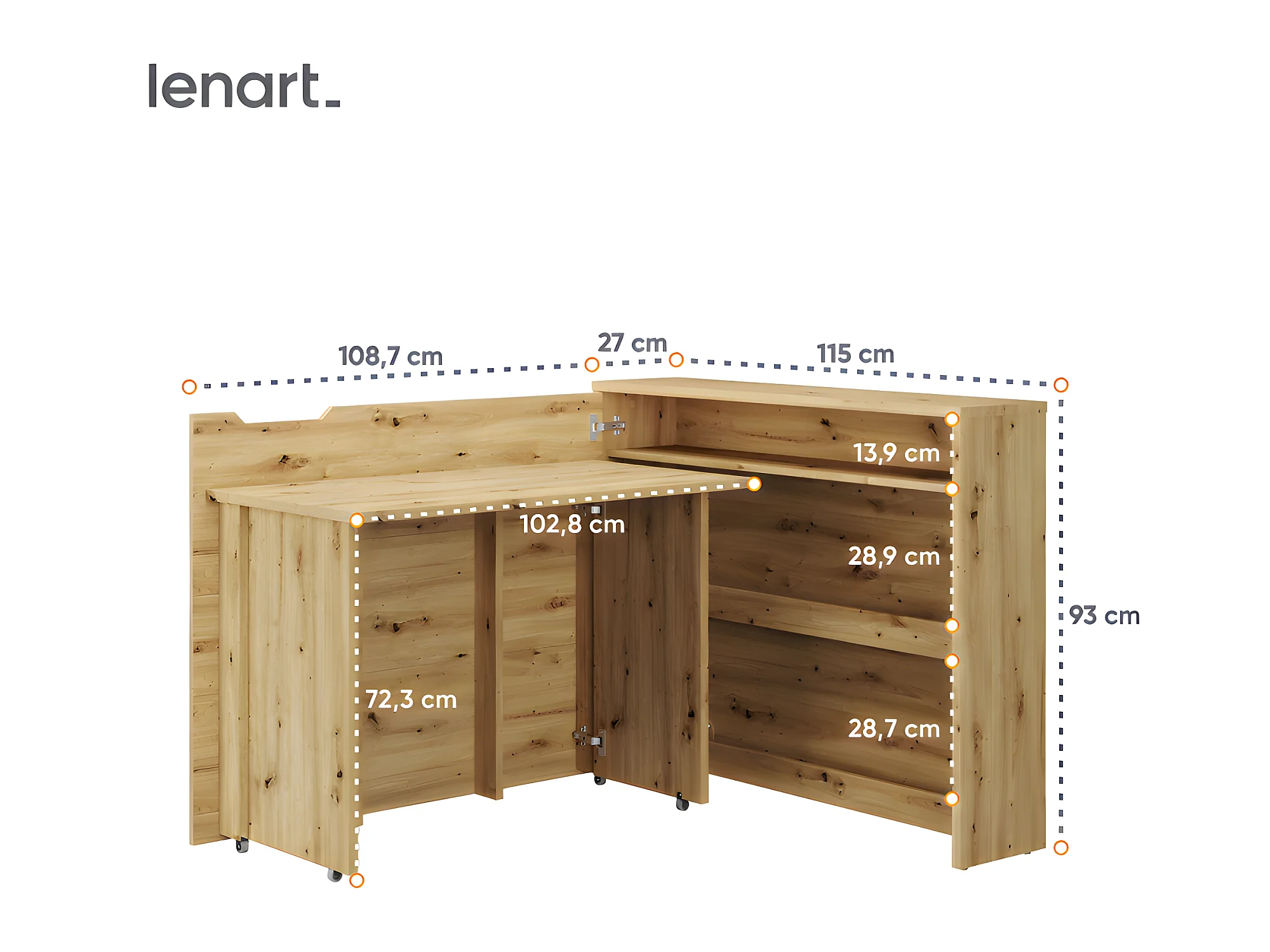 Lenart Bureau extensible avec rangement 115cm OFFICE CONSUS CW01L chêne artisan gauche