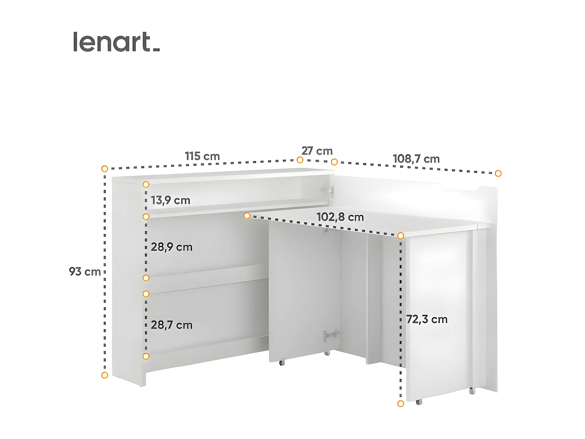 Lenart Bureau extensible avec rangement 115cm OFFICE CONSUS CW01P blanc brillant droit