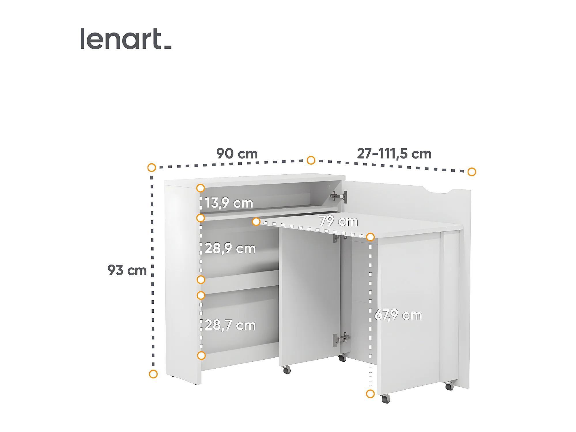 Lenart Bureau extensible avec rangement WORK CONCEPT SLIM CW02 P Droit 90 cm blanc mat