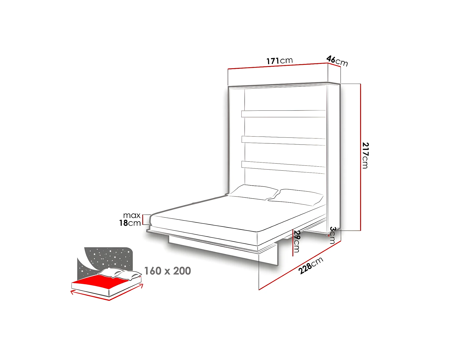 Lenart Lit escamotable MATELAS inclus Vertical 160x200cm Blanc mat Lit Rabattable"Consus"