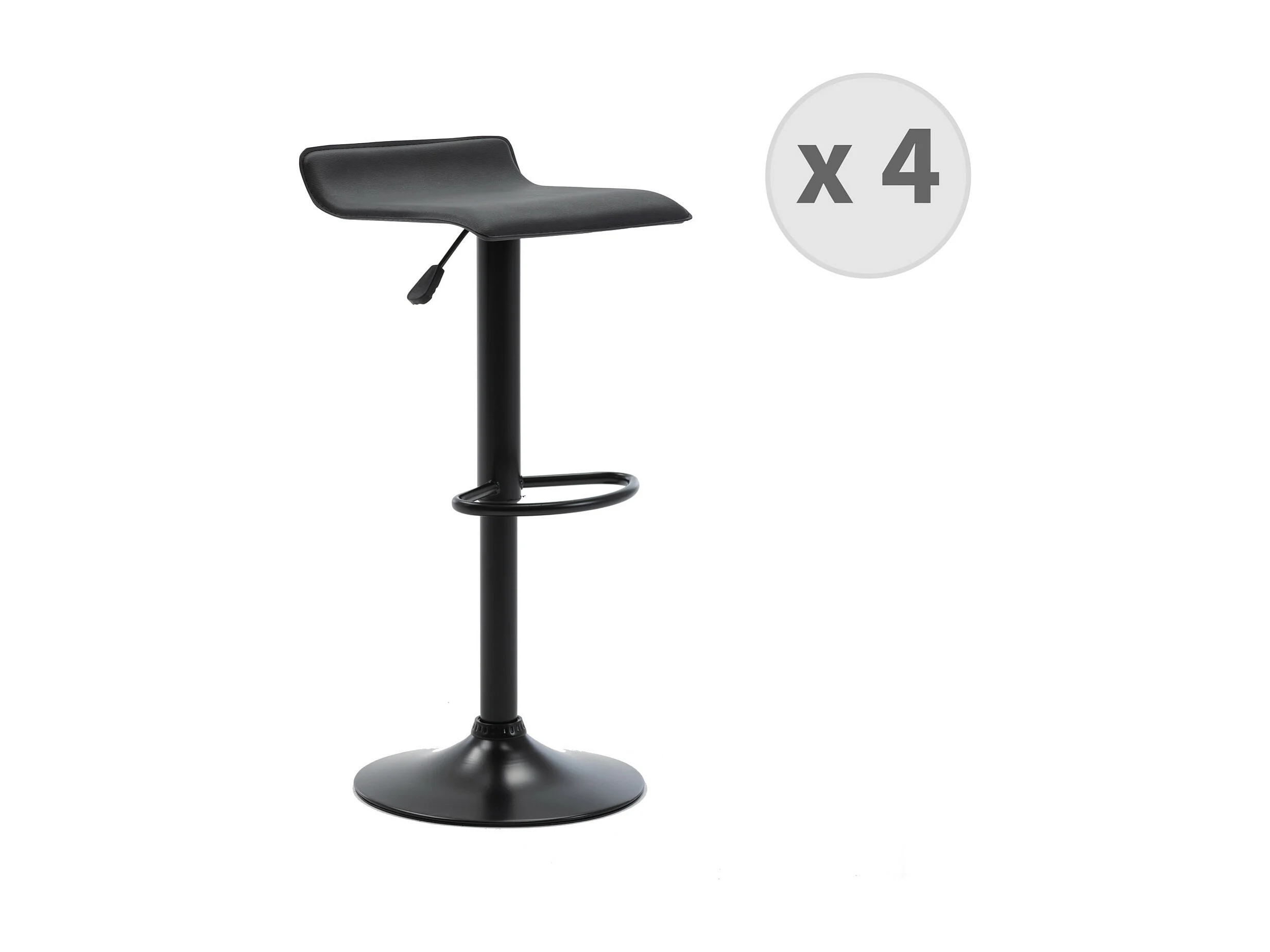 LEO - Tabourets de bar design réglable PU noir pieds noirs (x4)