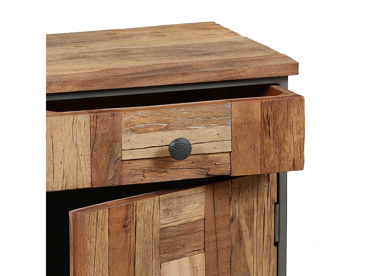 LEONARD - Chevet 1 Porte 1 Tiroir Acier et Bois Massif