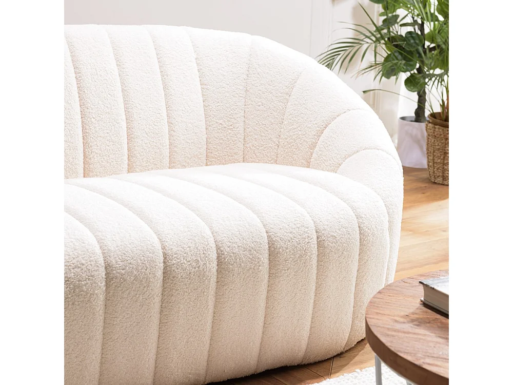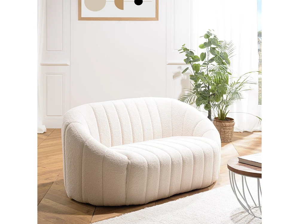 LEOPOLD - Canapé coquillage 2 places en tissu bouclette blanc