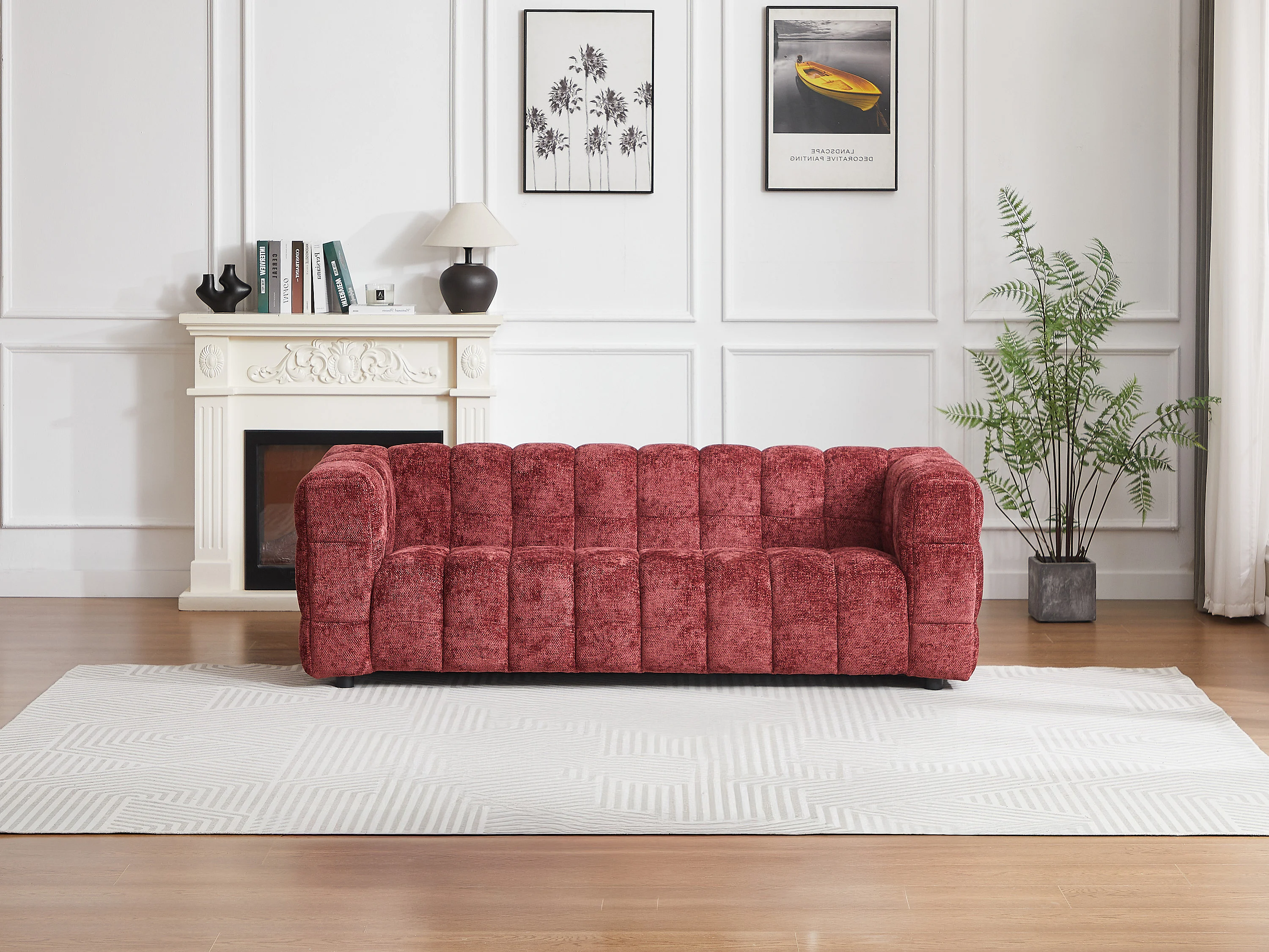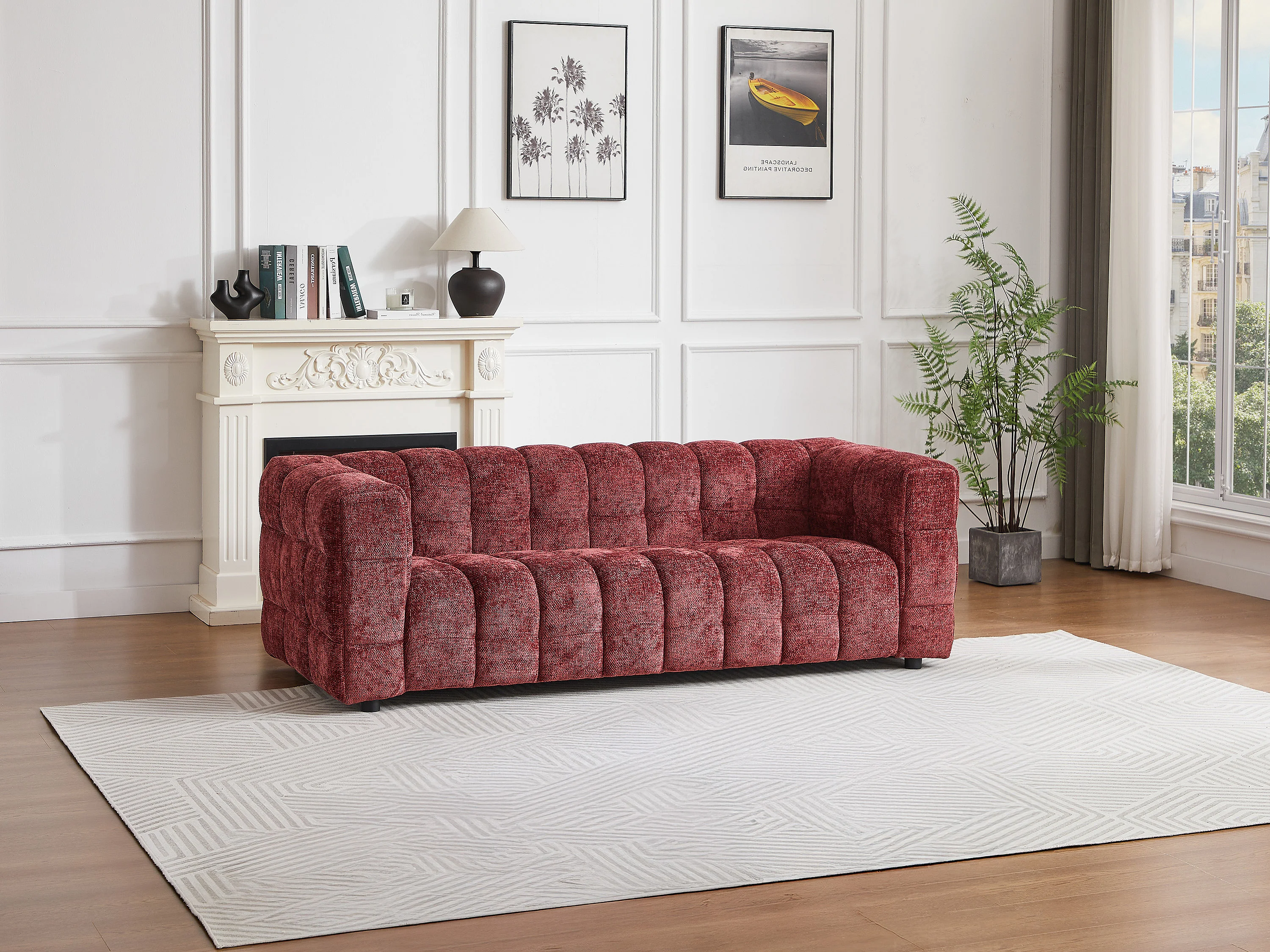 Canapé 3 places en tissu texturé bordeaux LERICI de Pascal Morabito