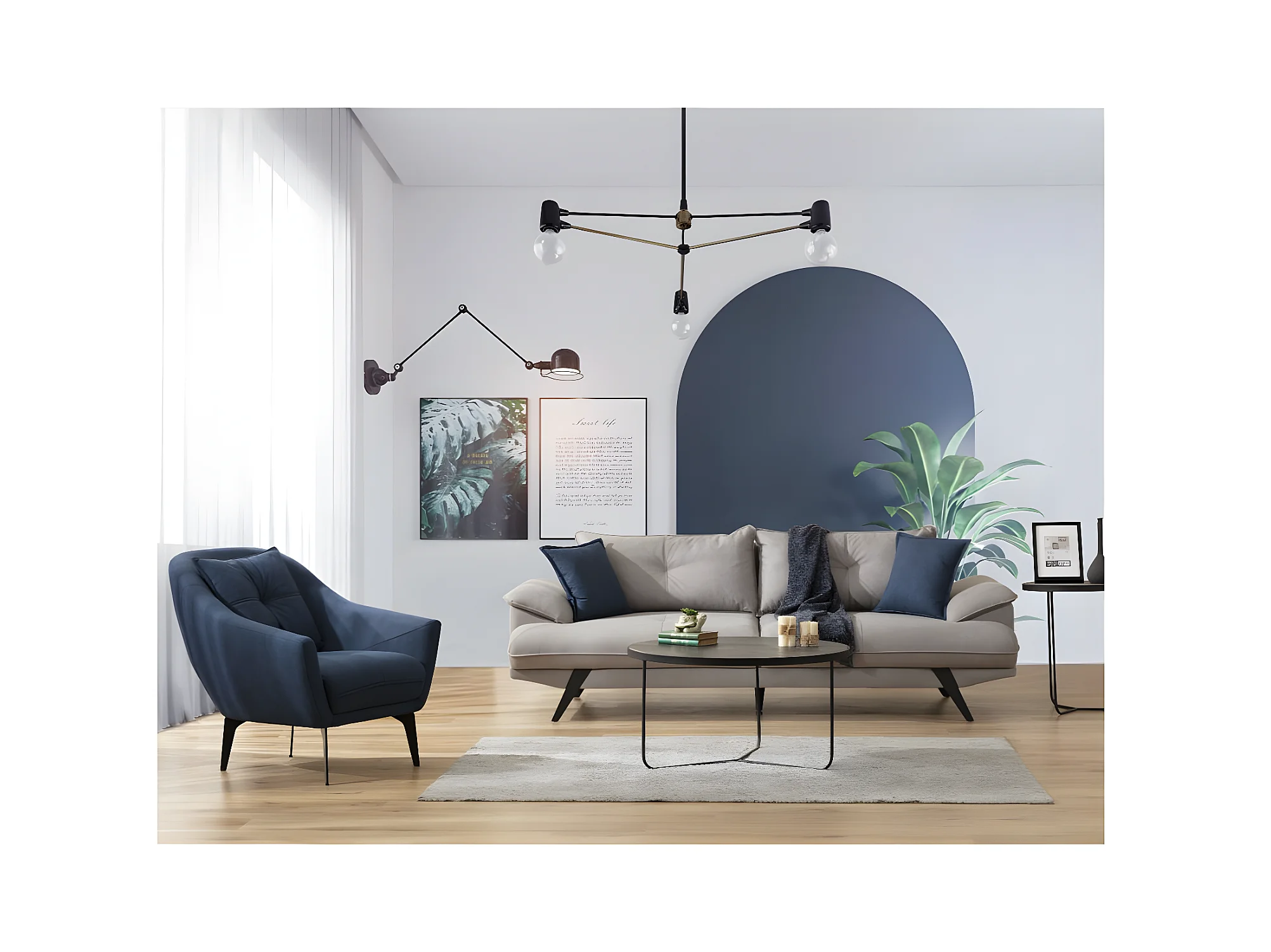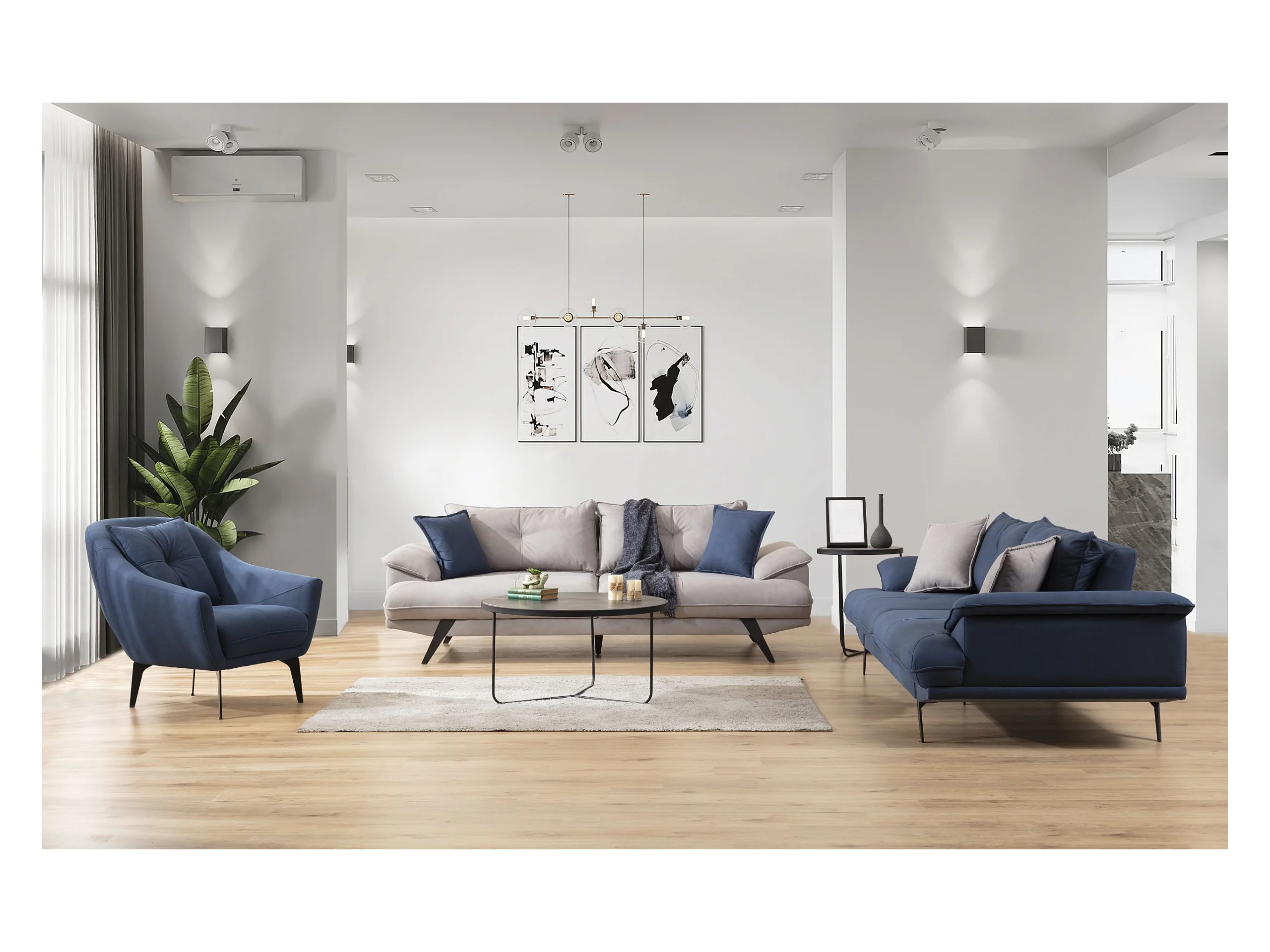 Lerin (Set 3+3+1)/Tissu-Bleu&Gris