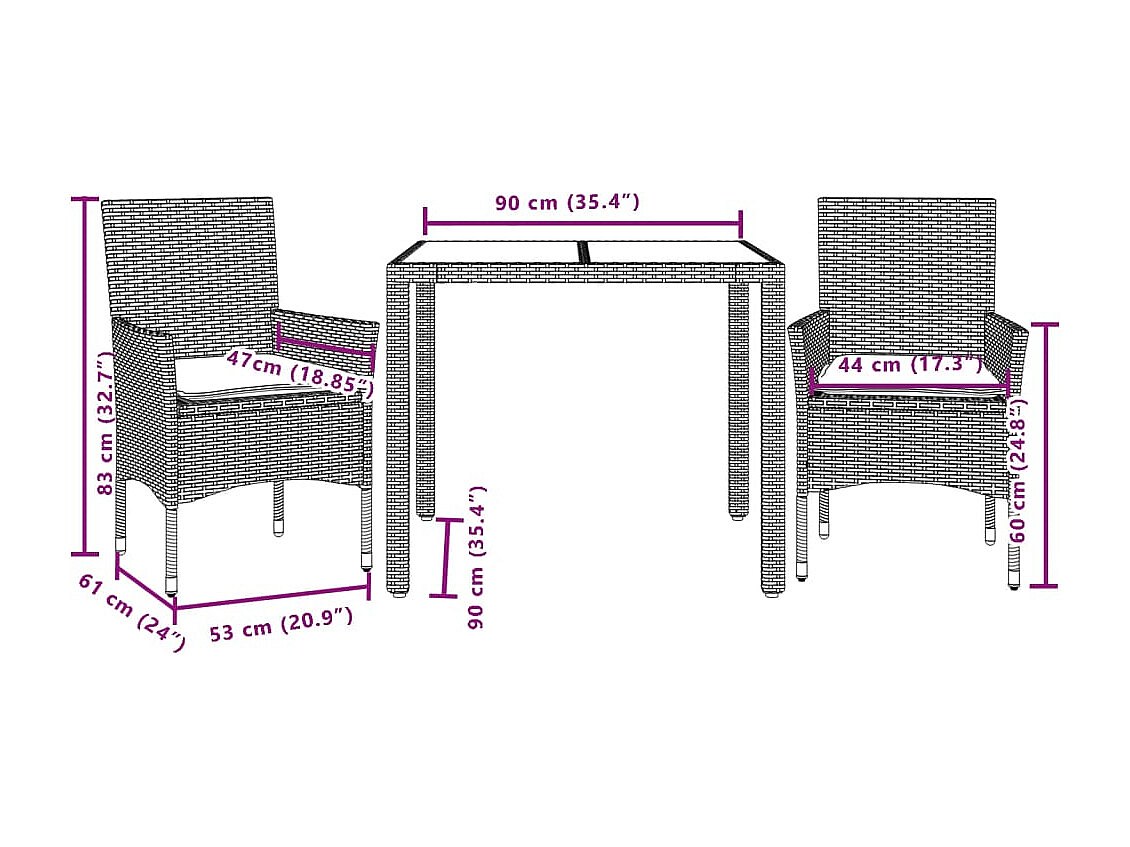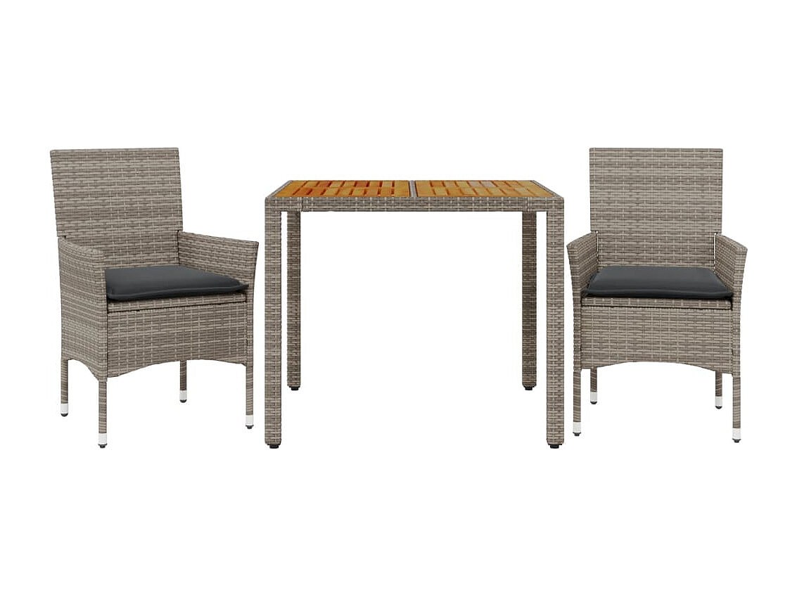 Les Mureaux Ensemble à manger de jardin et coussins 3 pcs gris rotin acacia