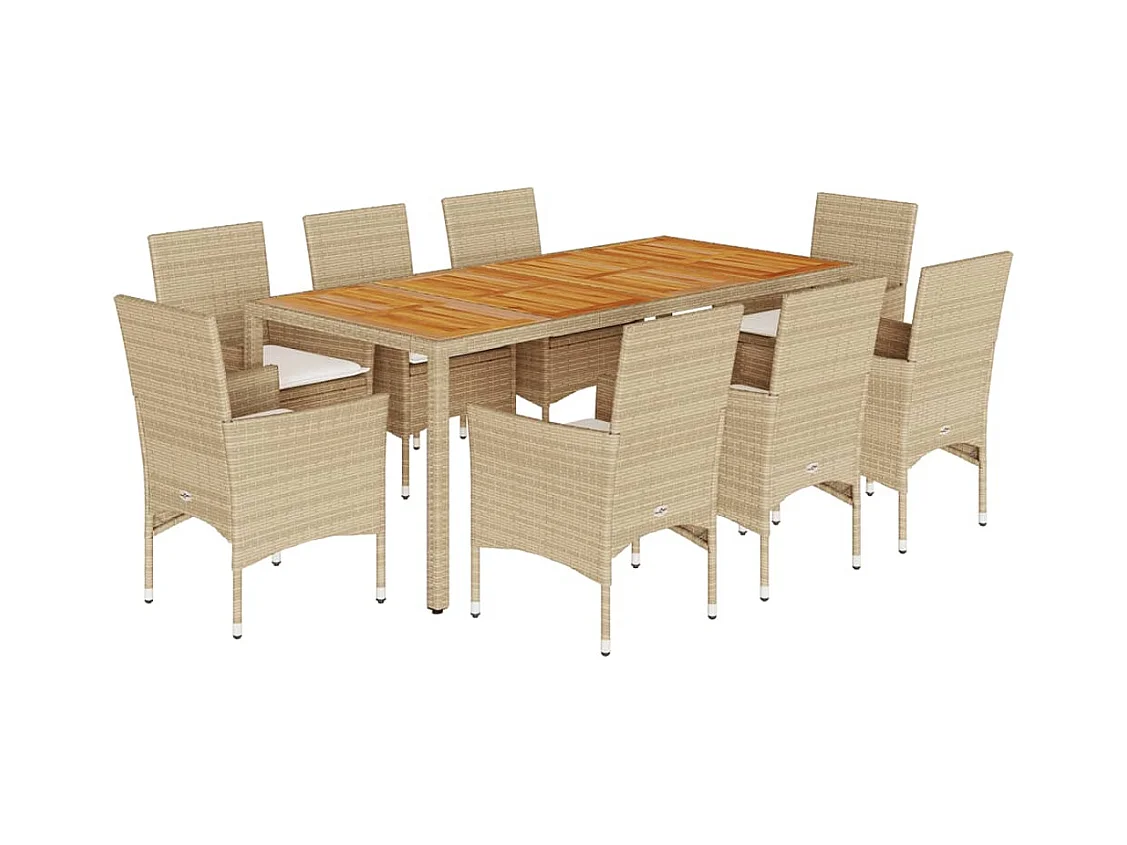 Les Mureaux Ensemble à manger de jardin et coussins 9pcs beige rotin acacia