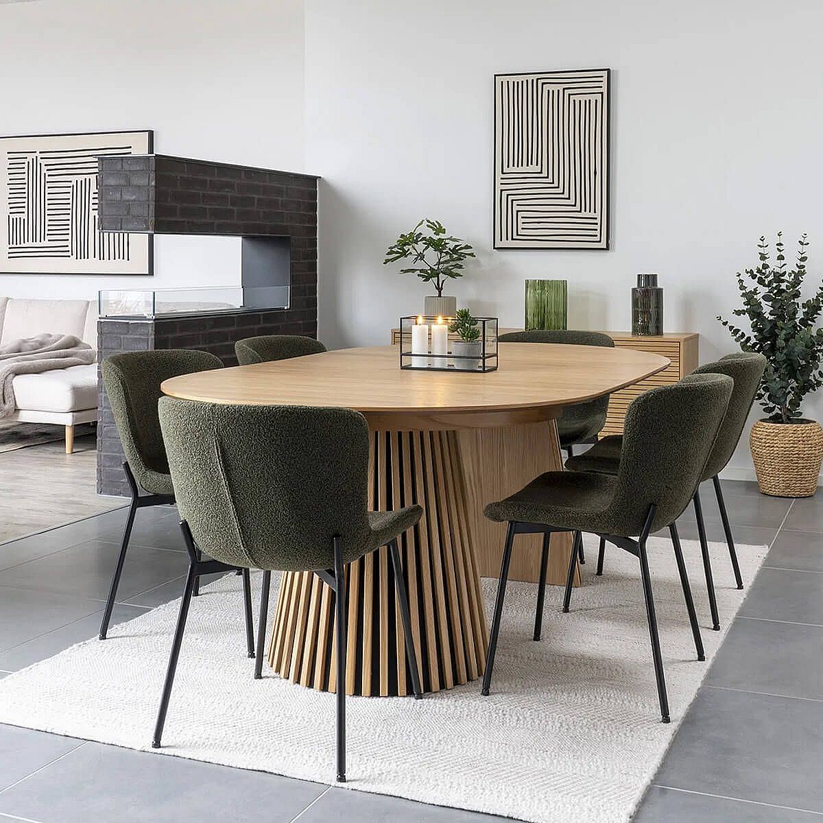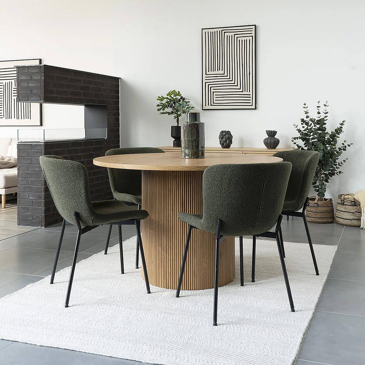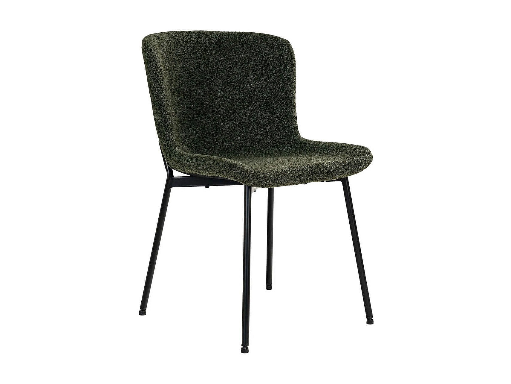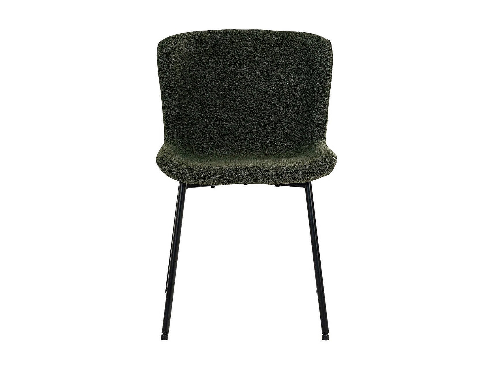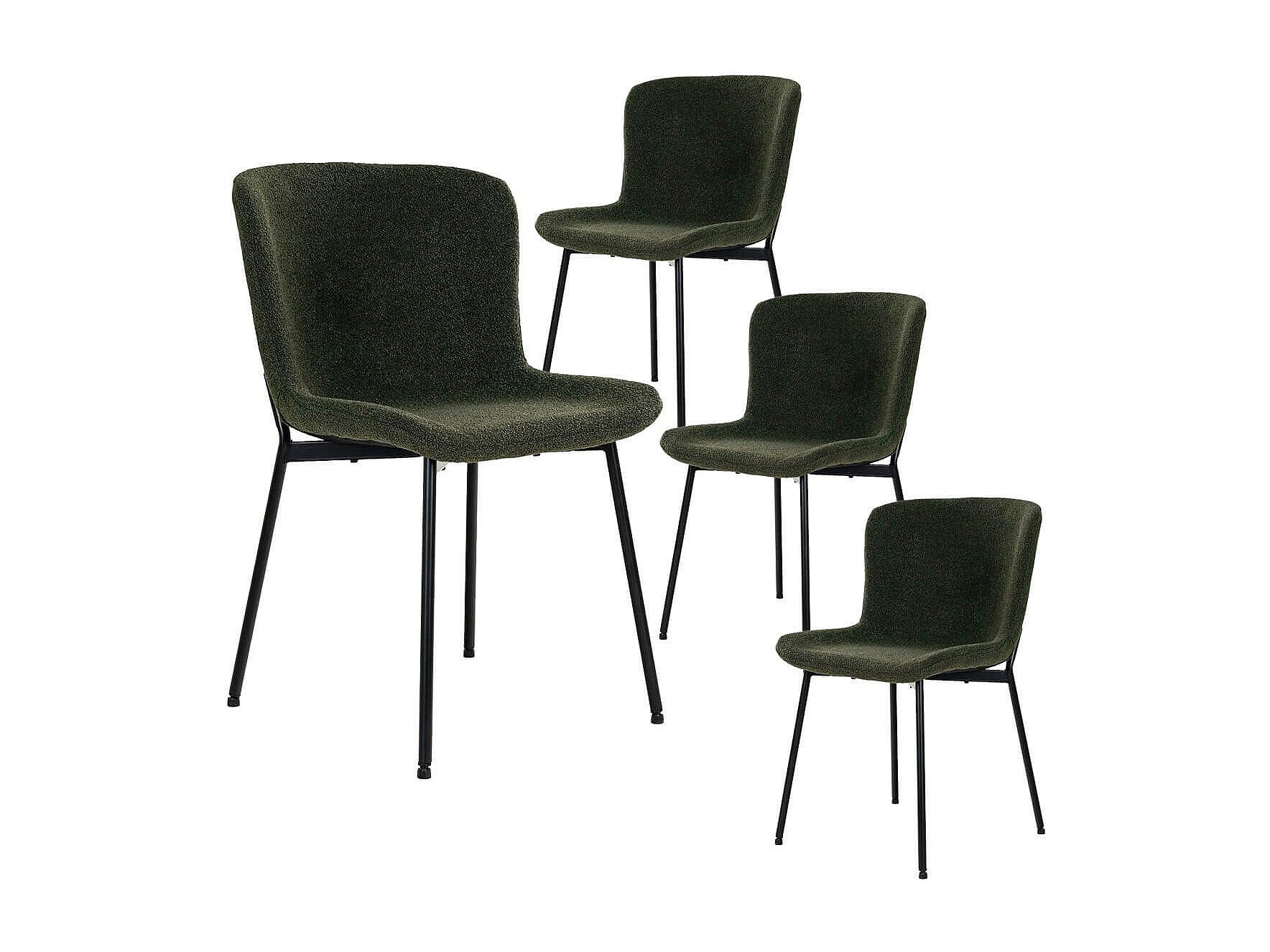 LESLI - Lot de 4 Chaises Tissu Bouclé Vert foncé Pieds Métal Noir