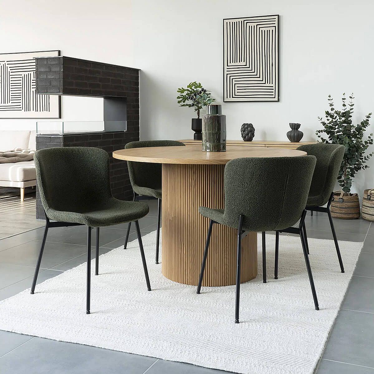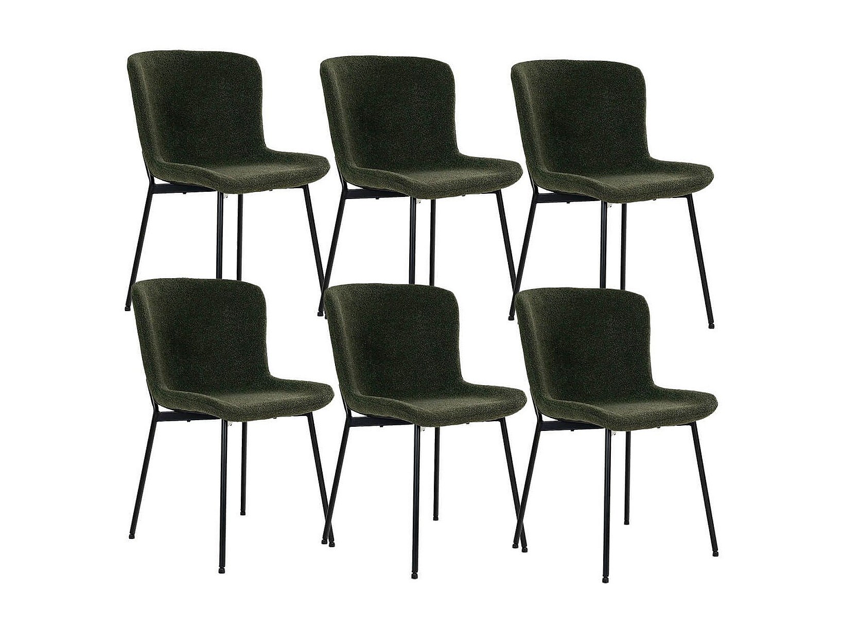 LESLI - Lot de 6 Chaises Tissu Bouclé Vert foncé Pieds Métal Noir