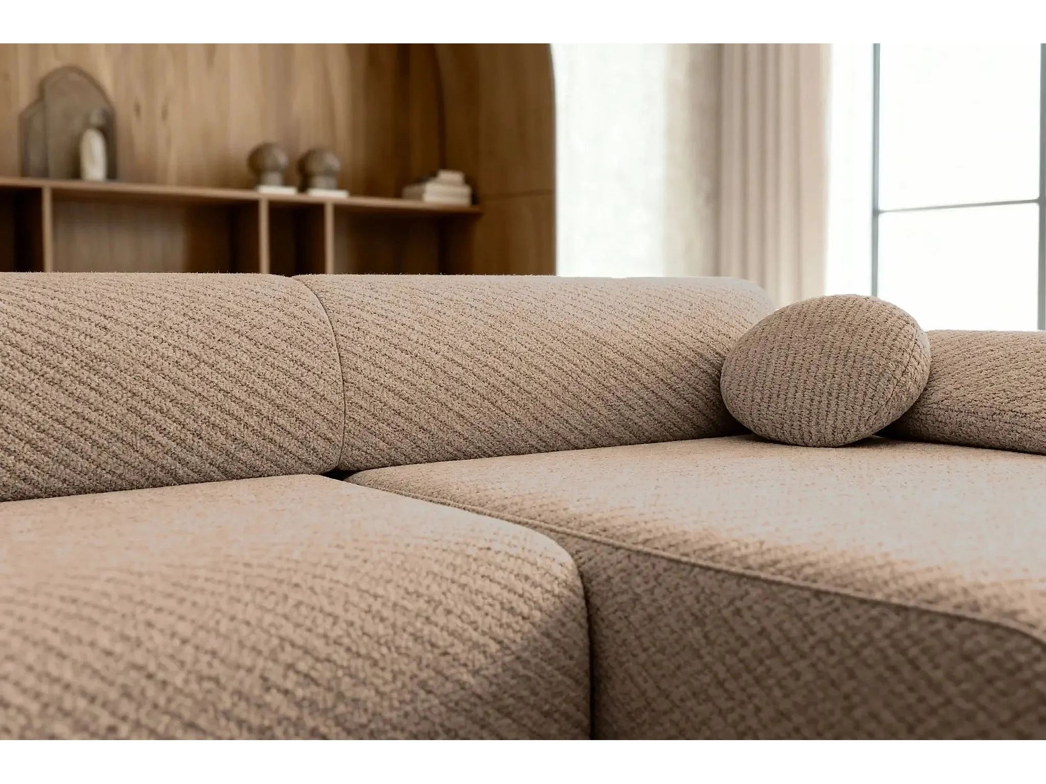 LEVI - Canapé d'angle convertible tissu lisse 3 places - Café - Gauche