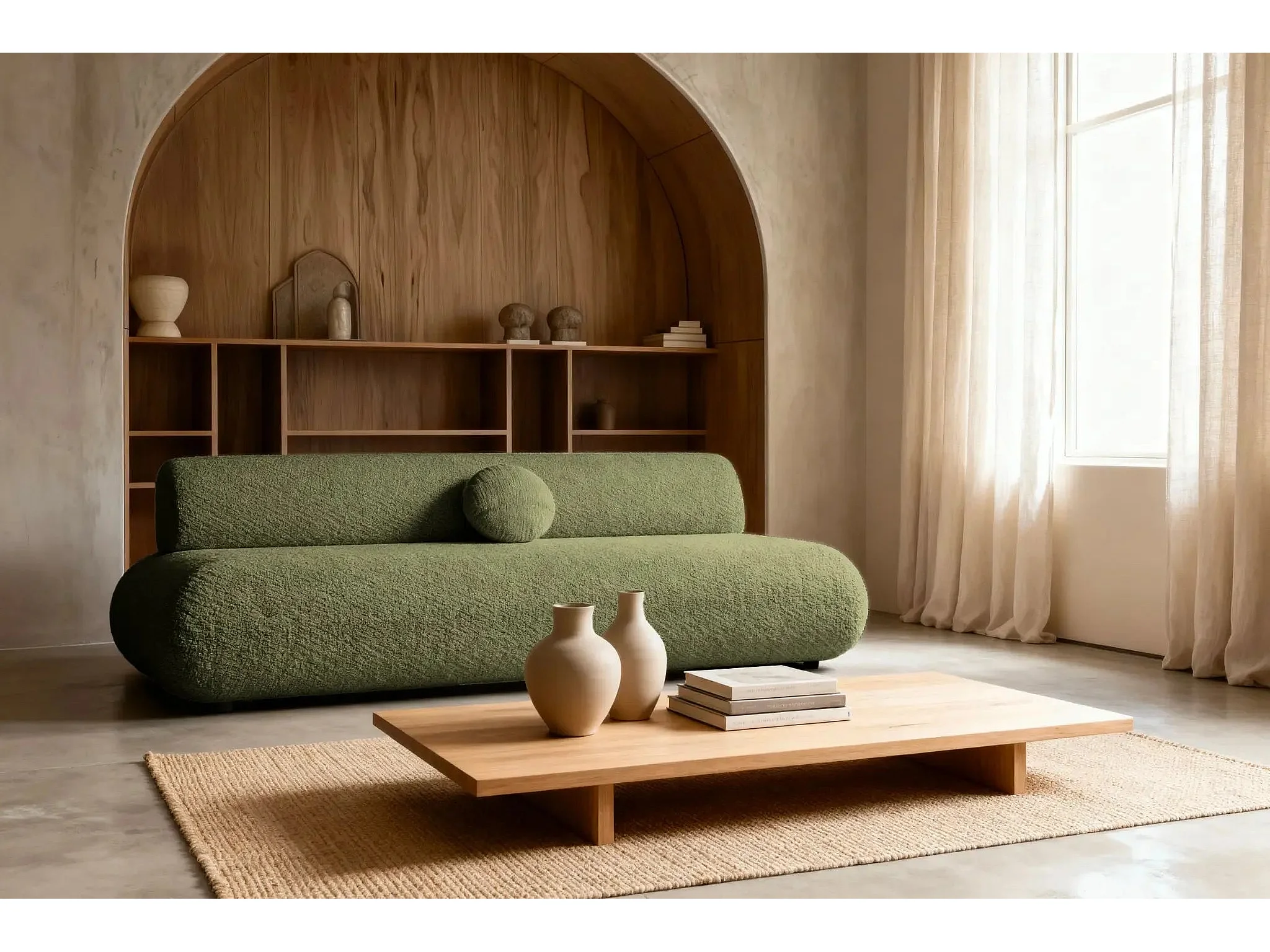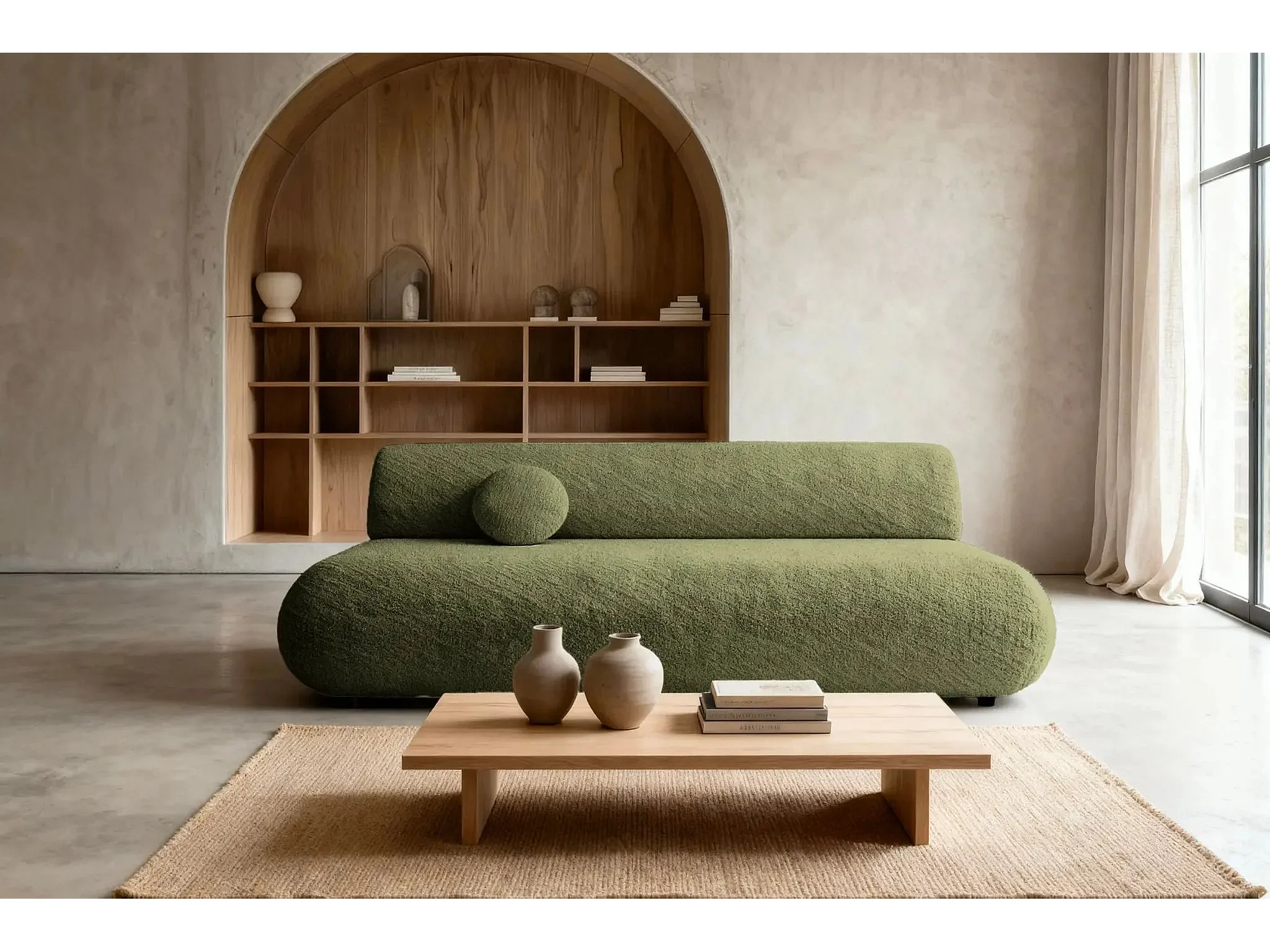 LEVI - Canapé droit convertible tissu lisse 2 places - Vert