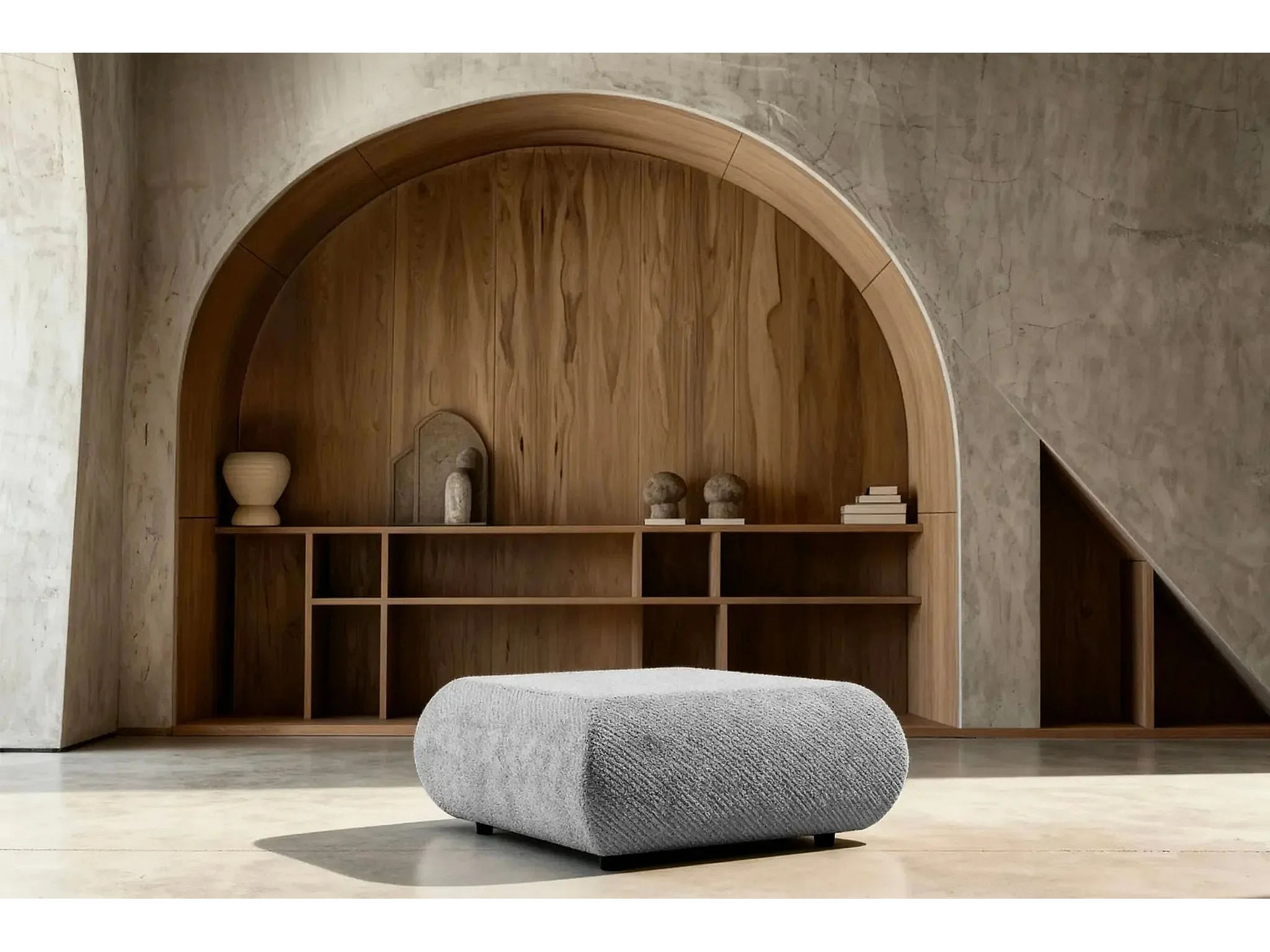 LEVI - Pouf en tissu lisse Gris clair 88x88x41