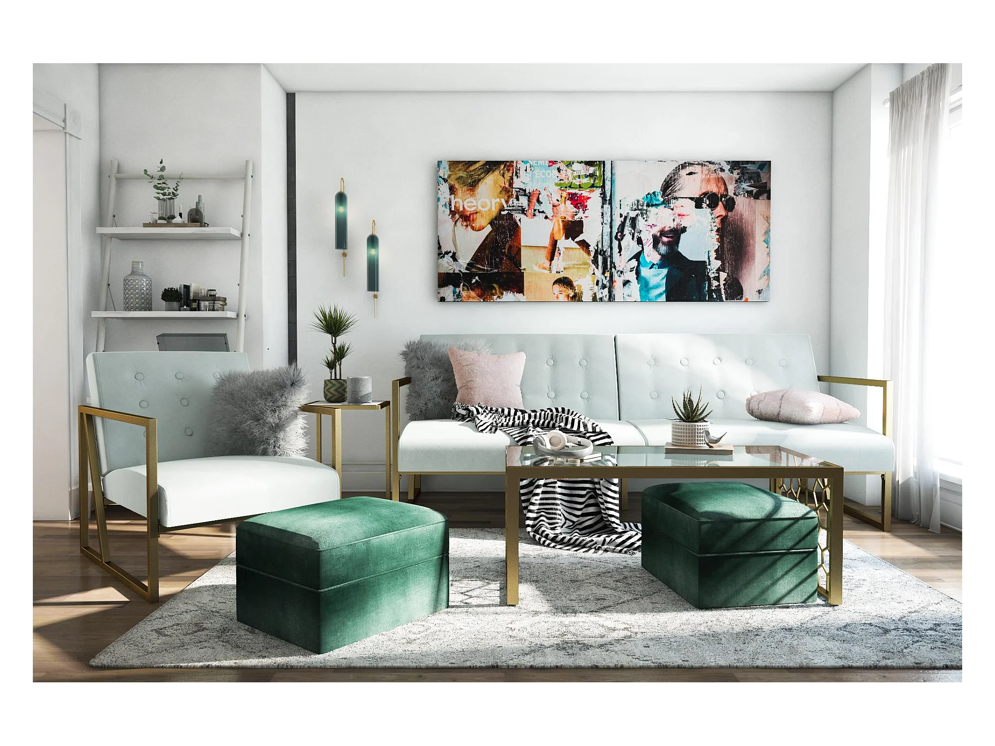 Lexington | Canapé-lit 3 places en velours Bleached Teal