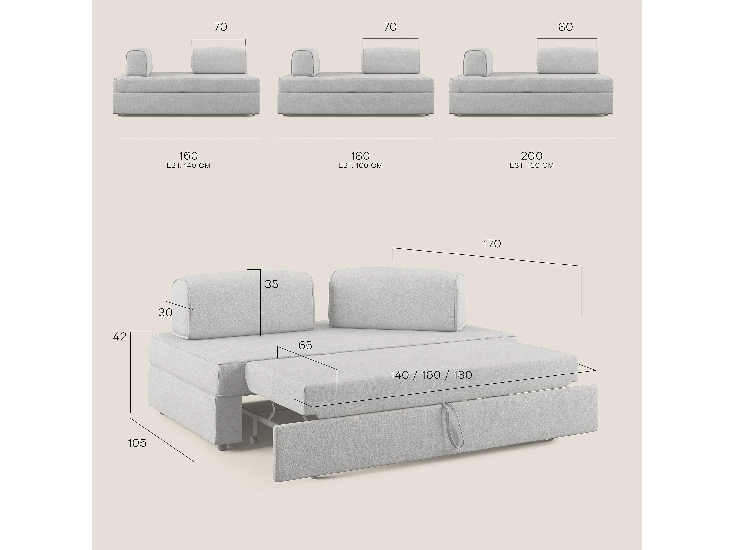 Liberty Canapé sans pouf amovible et dossier amovible en tissu imperméable T02 200 cm rose