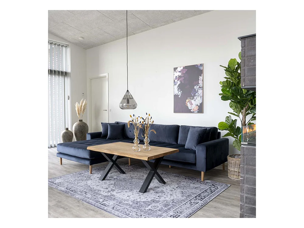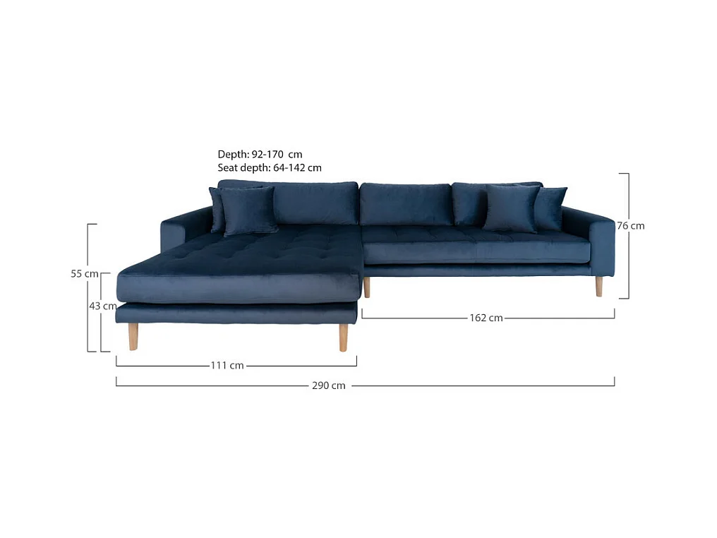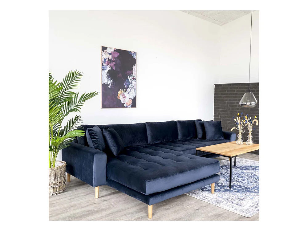 Lido - Canapé d'angle gauche en velours L290cm : Couleur - Bleu foncé