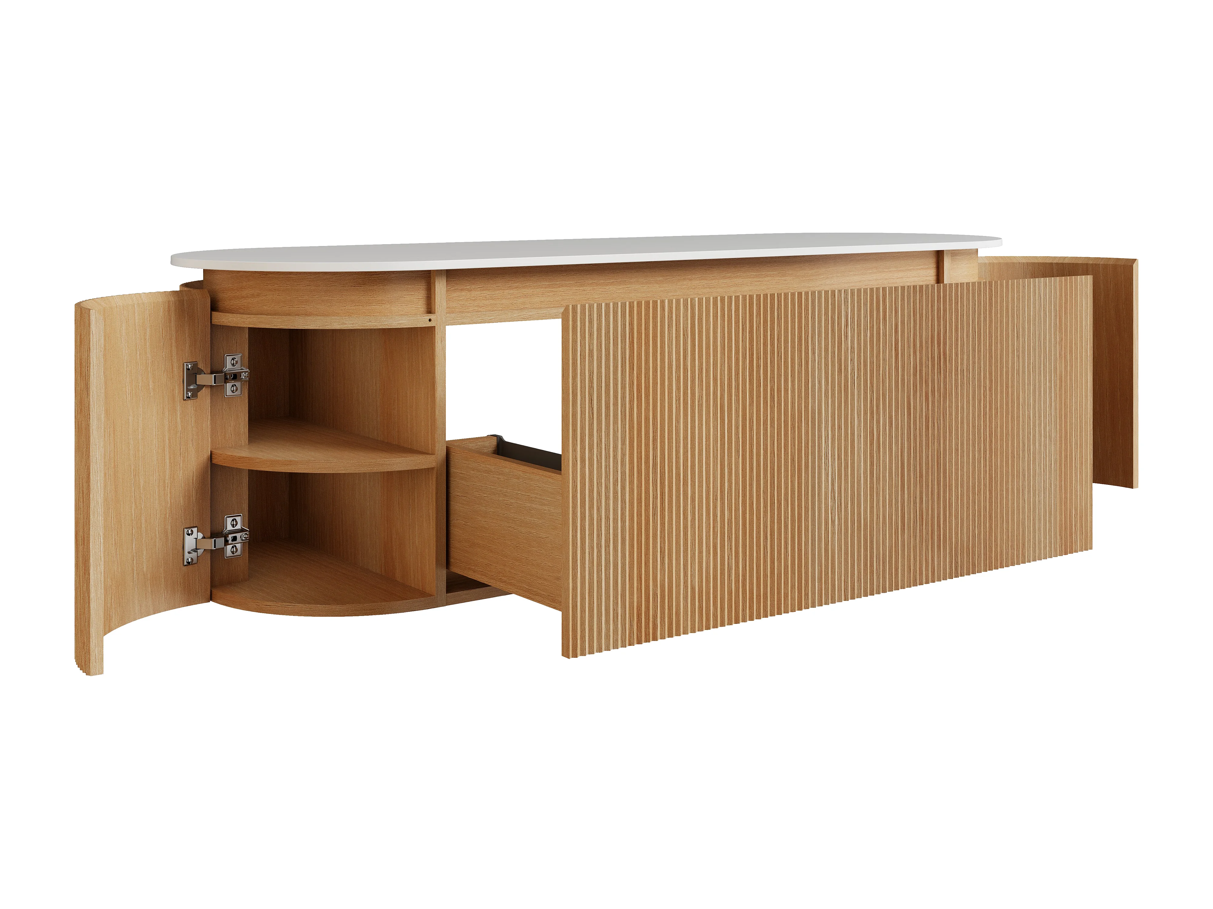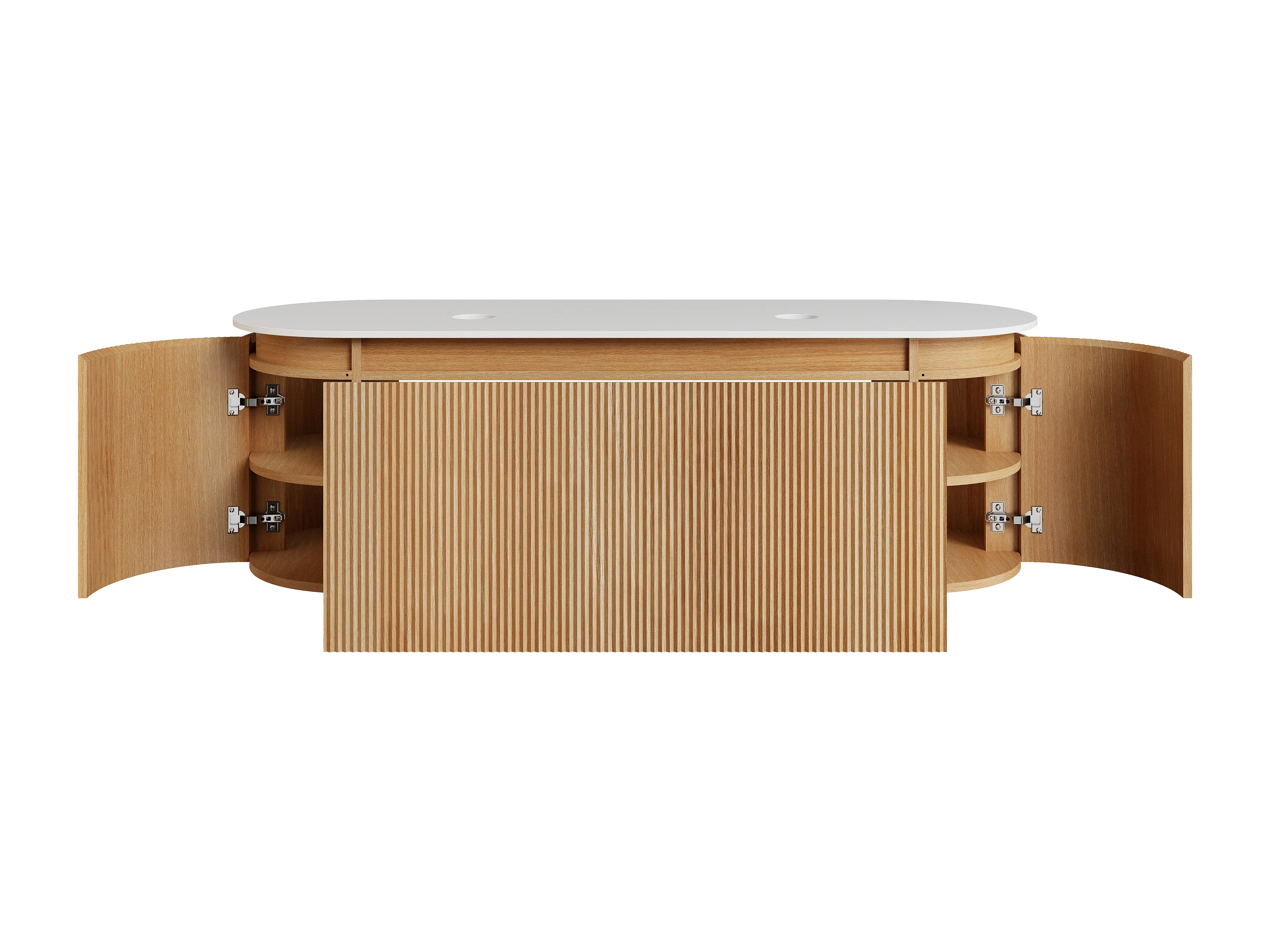 Meuble sous vasque suspendu strié en bois de frêne avec plan en pierre frittée mate – Naturel clair - L150 cm - LILIKO